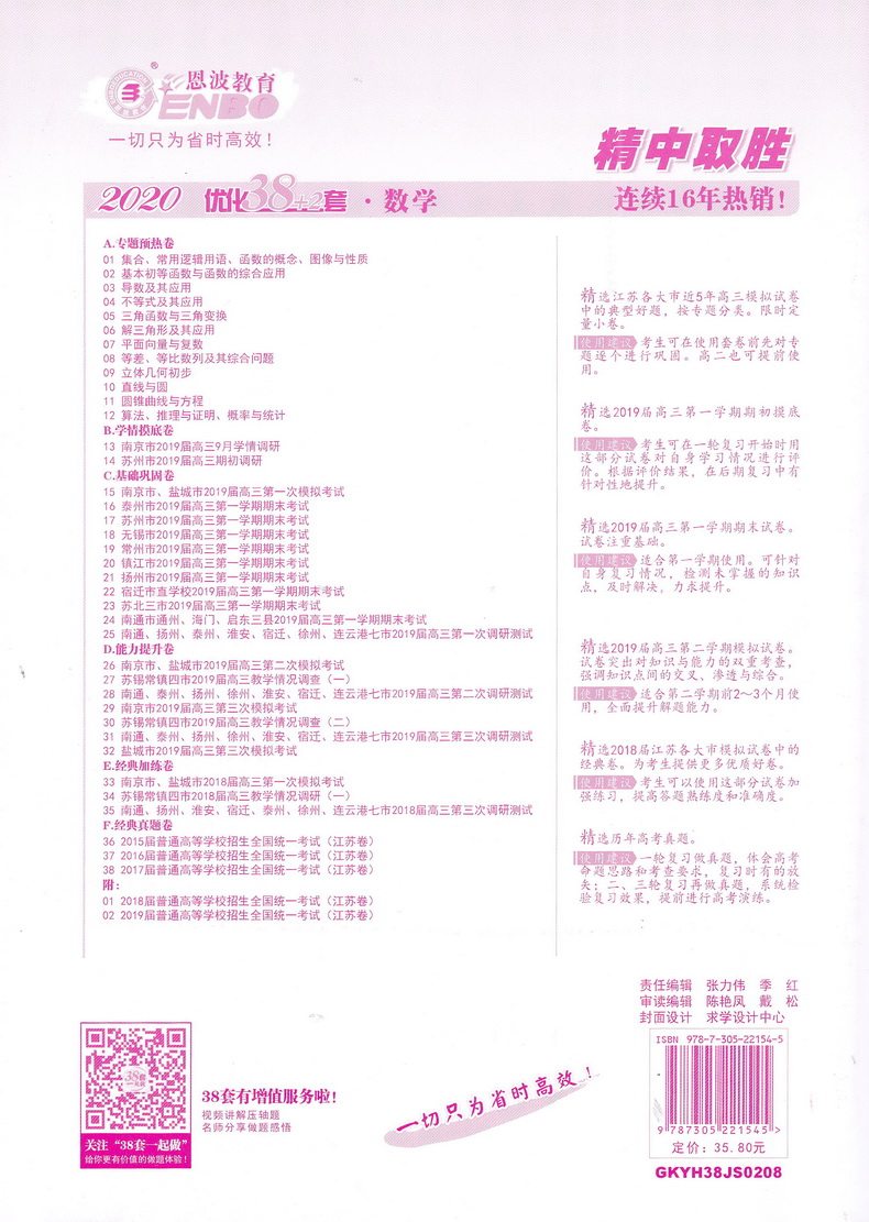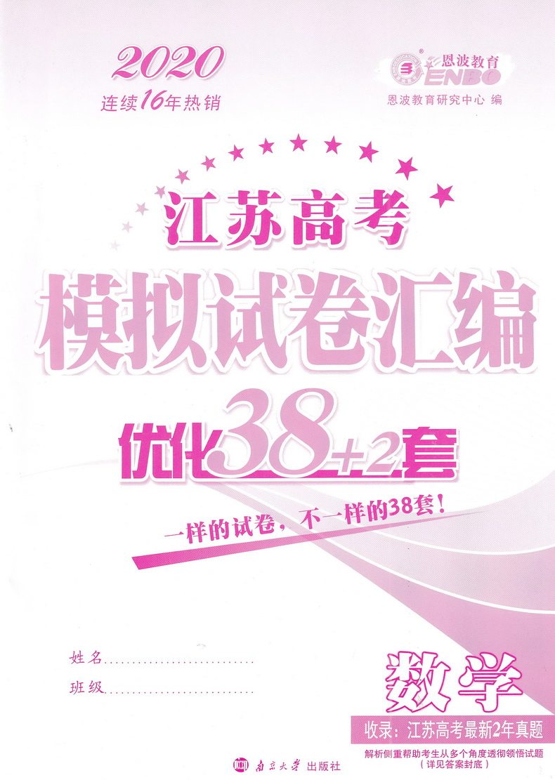 2020 Embo Education Eduction jiangsu College Extance Optimation Оптимизация 38+2 наборы математики включает в себя вступительный экзамен в колледже Цзянсу Новые 2 года реальных вопросов.
