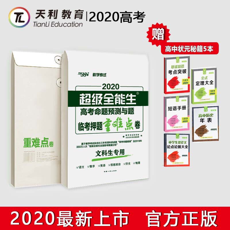 Tianli 38 наборов 2020 года Супер Всеобъемлющий всемогущий вступительный вступительный экзамен Прогноз и Тематические испытания Проблема Сложные Свит-Либеральные Учащиеся Специально подарки 5 томов научных читов.
