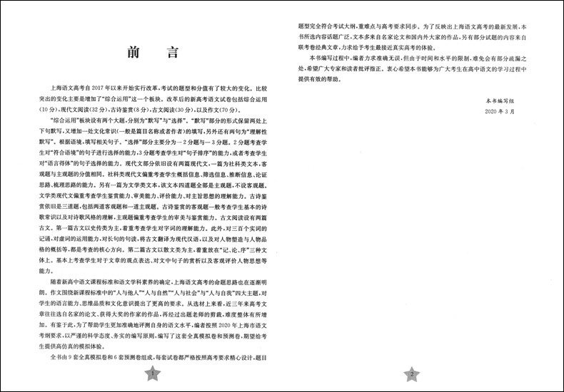 SPOT 2020 Новая версия Шанхайского нового вступительного экзамена в колледже Экзамен на уровне китайского истинного моделирования. Объем+прогноз содержит ответы Шанхайские вступительные экзамены колледжа Китайский