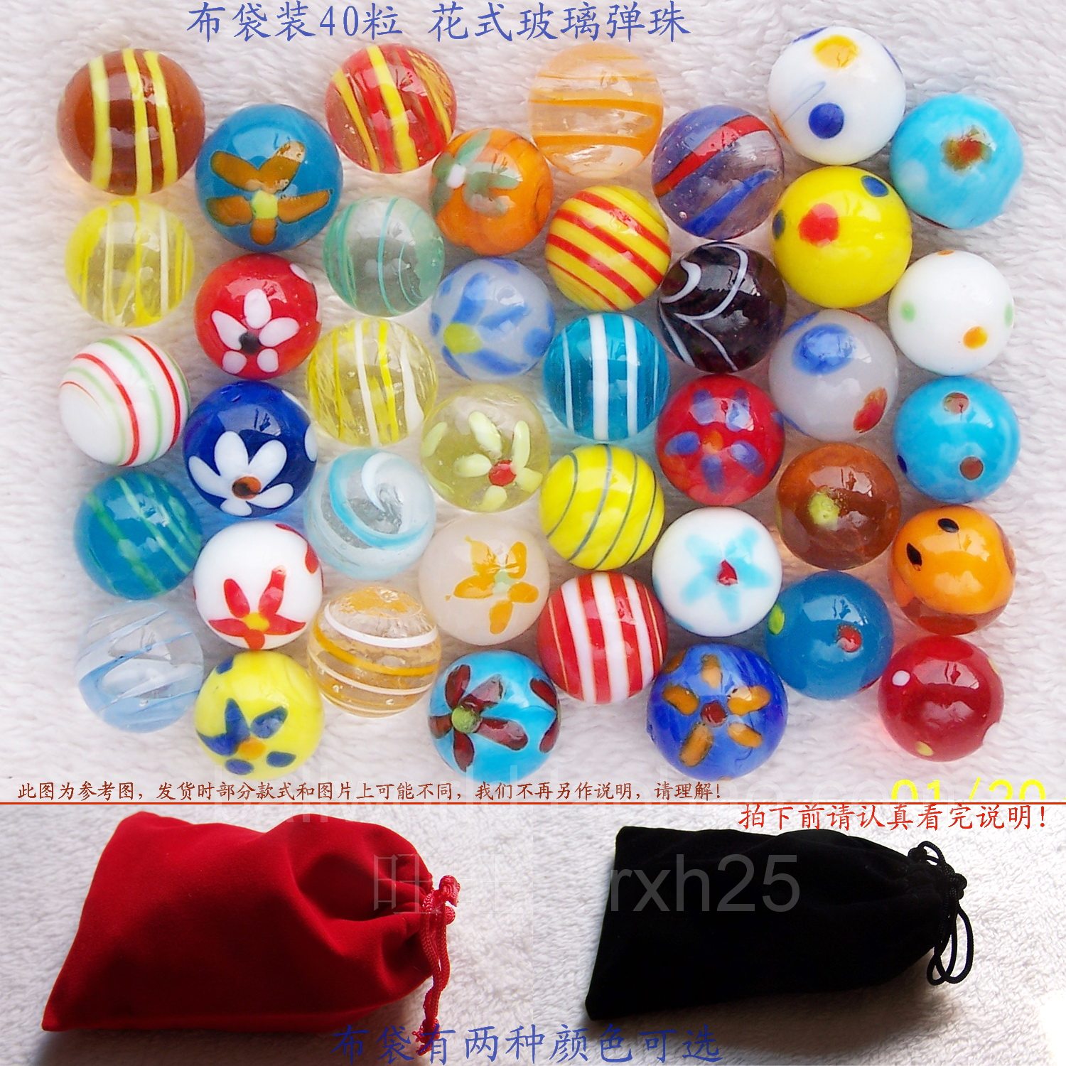 - Одна бесплатная тканевая сумка:Диаметр 16-18 мм разные стили замечательные шарики 40 штук, чтобы получить тканевую сумку.