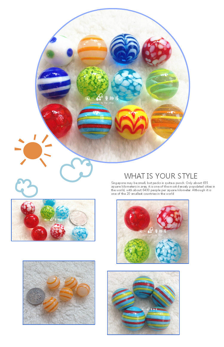 Девять -лечебные магазины восемь цветов 20 мм чистого чистого детского стеклянного стеклянного стеклянного шарика.
