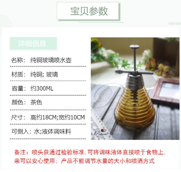 Ретро медный стеклянный цветочный горшок, распылитель, чайник, 18см, ностальгия