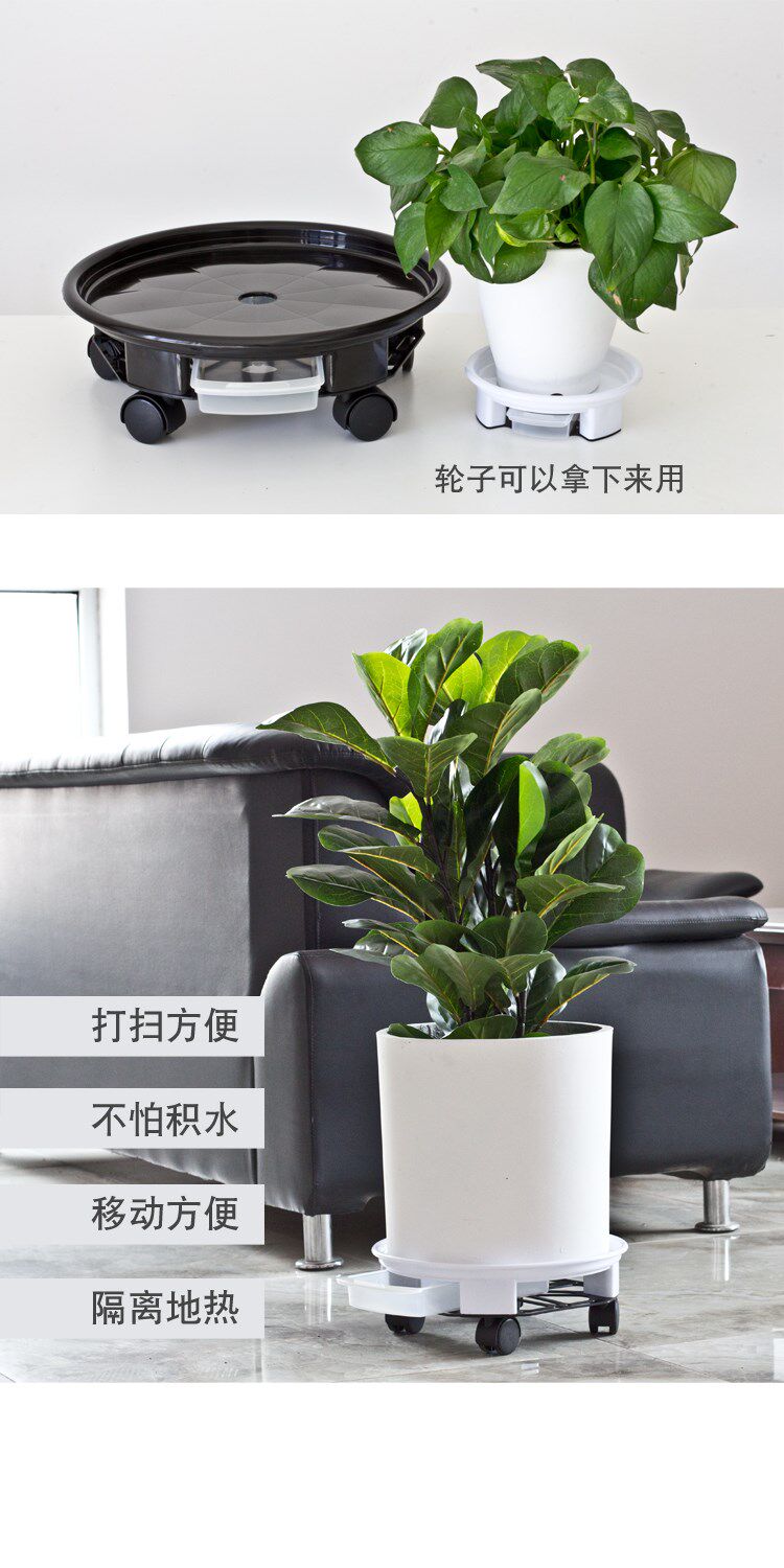 Поднос с цветочным горшком с нижней частью колесной подушки, универсальный передвижение с водой, подключенная к утечке, пластиковая пластиковая пластика, толстая круглая цветочная пластина Бесплатная доставка