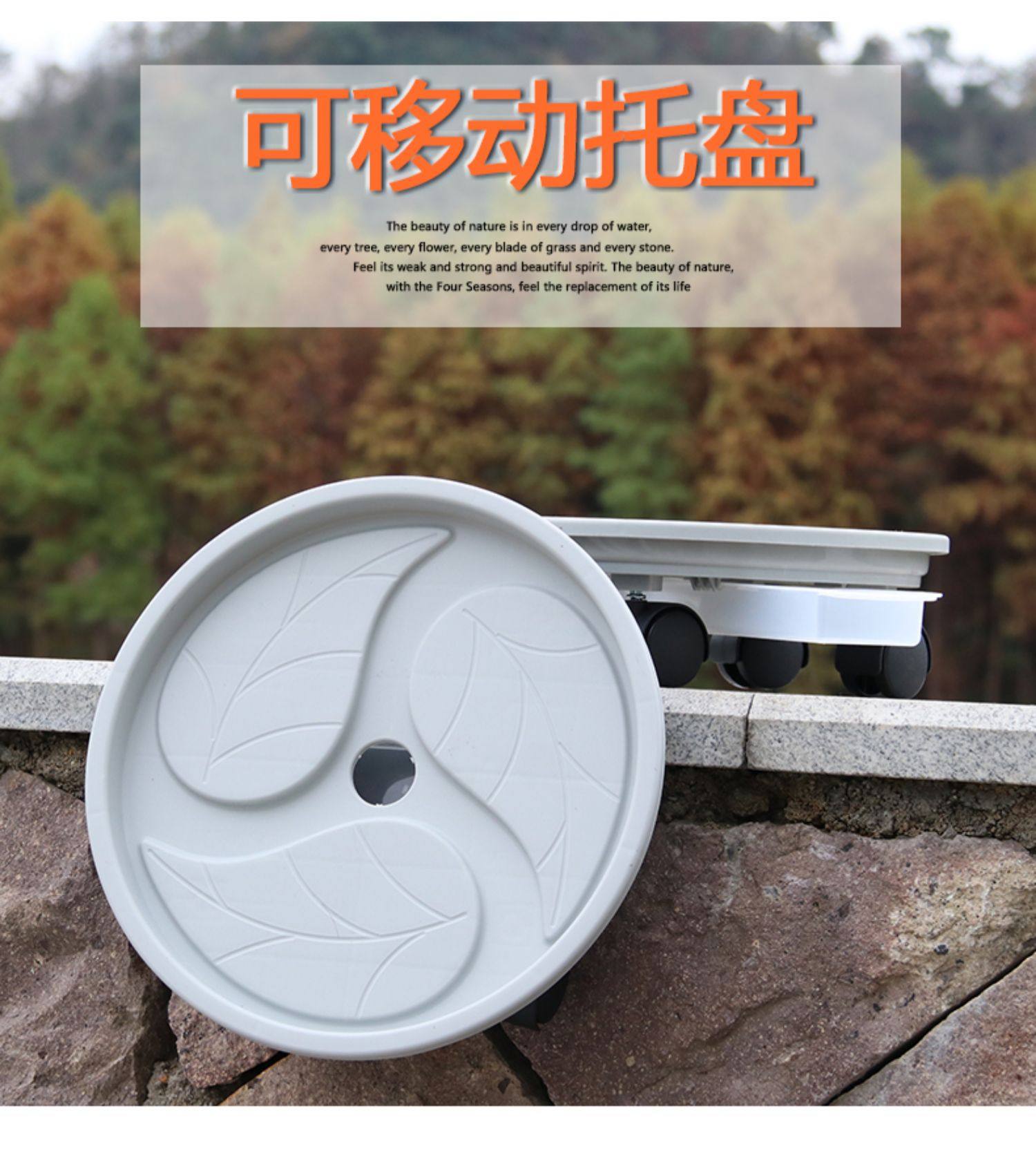 Круглая светло -серая трех-Leaf Mobile Tray Roy Roller Roller Raller Box Box Box Close Plate Basion с универсальным подносом колеса