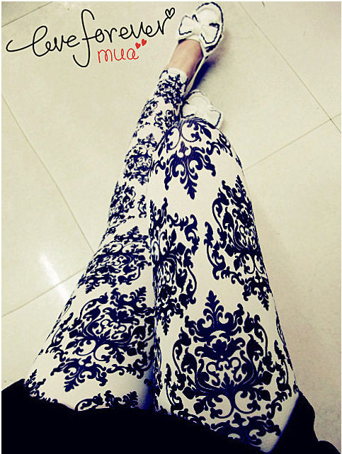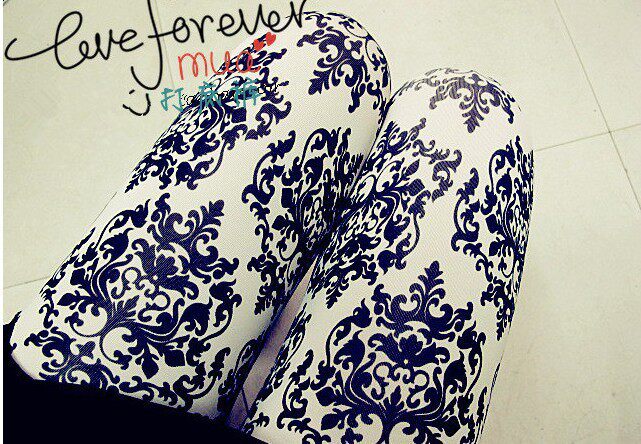 Осенние сине-белые шелковые леггинсы, штаны, в корейском стиле