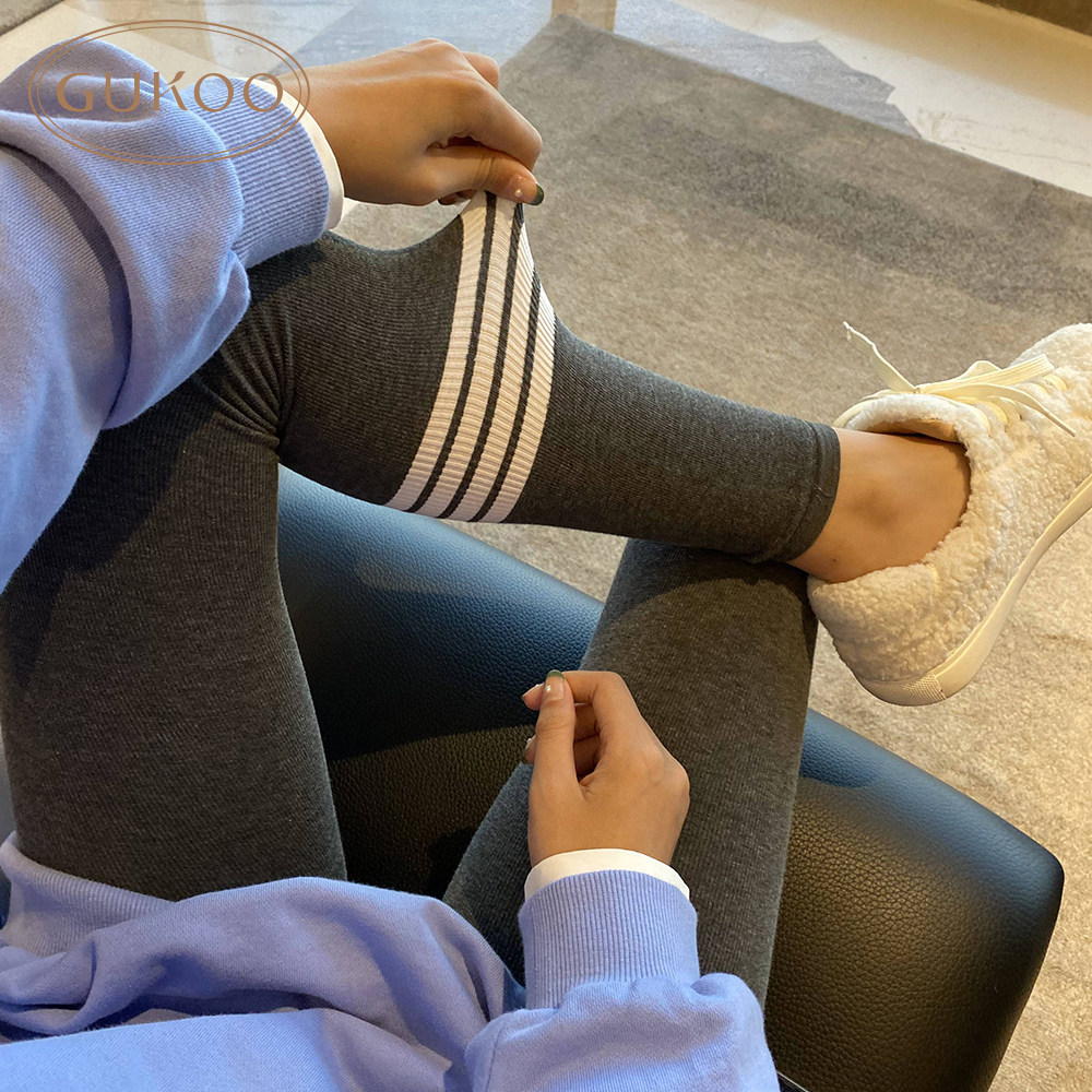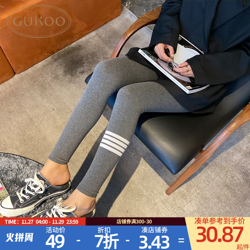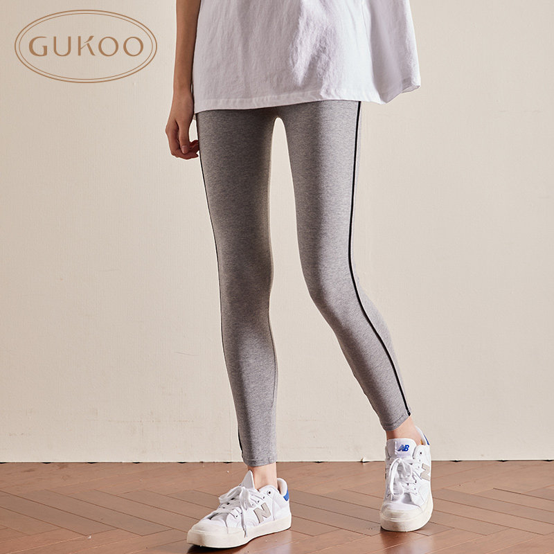 Gukoo/果壳 Осенние тонкие спортивные трендовые черные леггинсы, штаны, в обтяжку