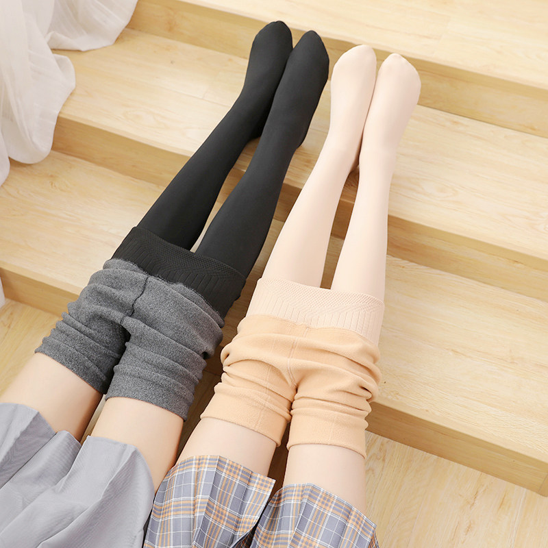 Штаны, тонкие осенние черные цветные флисовые демисезонные колготки, телесного цвета