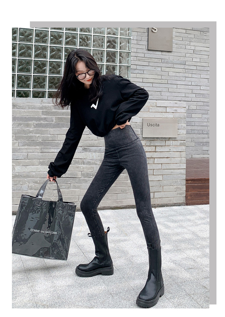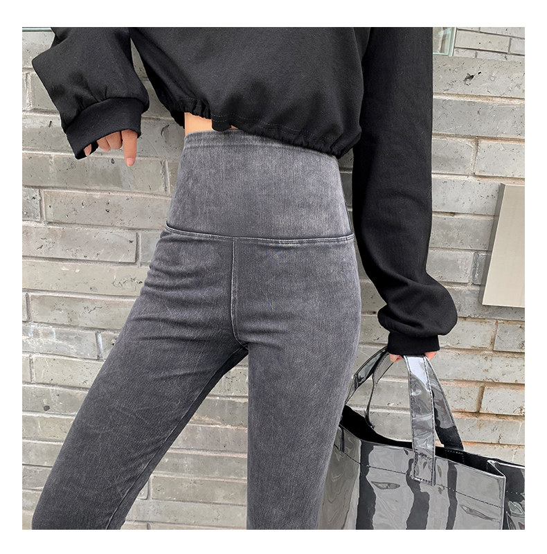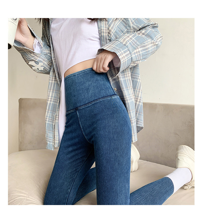 Джинсы, штаны, приталенные утепленные леггинсы, акула, 2021 года, новая коллекция, высокая талия