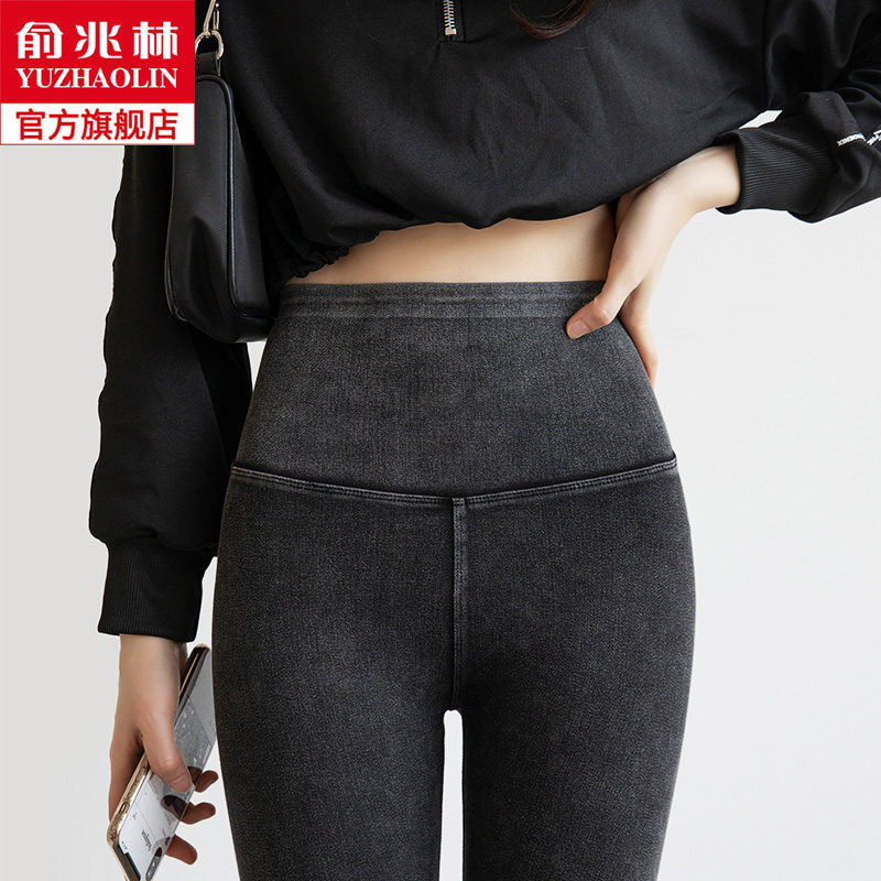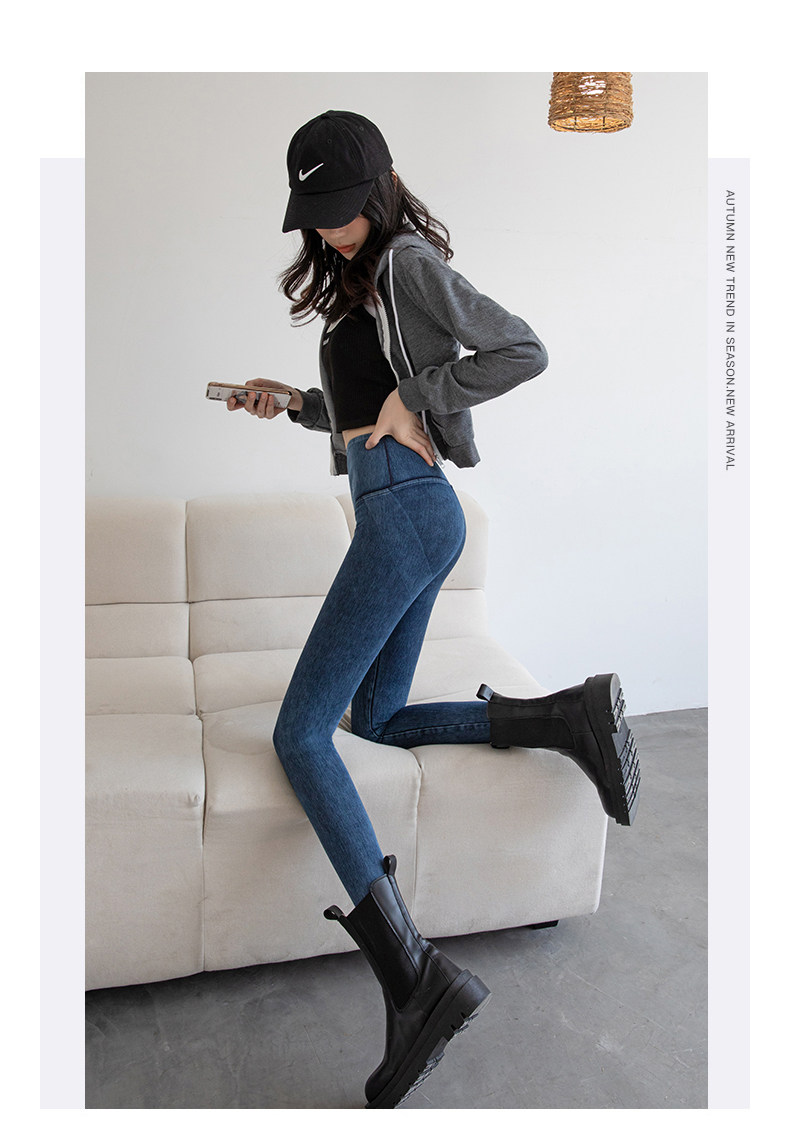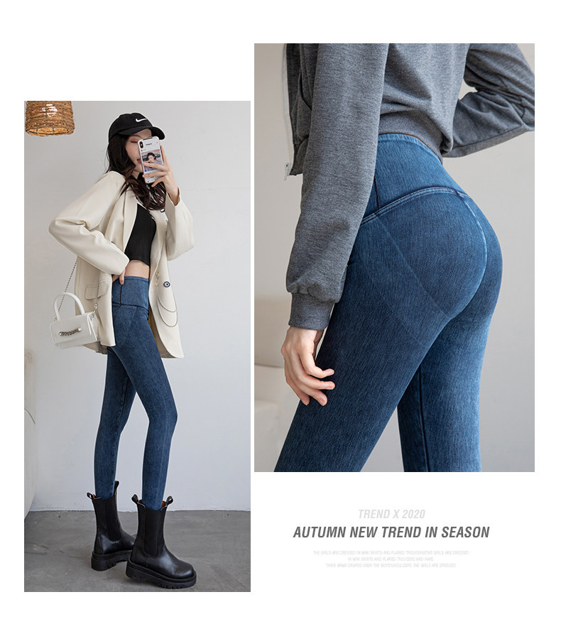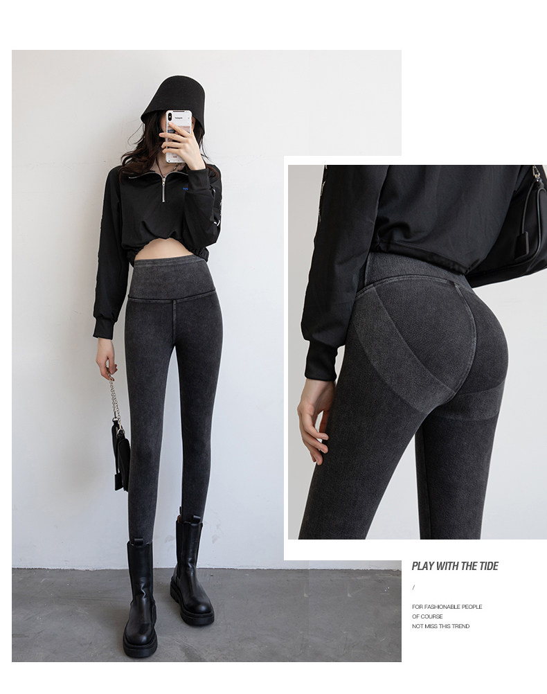 Джинсовые демисезонные тонкие леггинсы, утягивающий пояс на талию, белье для коррекции формы бедер, штаны, эластичная одежда для йоги, высокая талия, в обтяжку