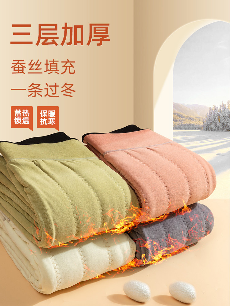 Удерживающие тепло зимние утепленные штаны, леггинсы, высокая талия, большой размер, для среднего возраста