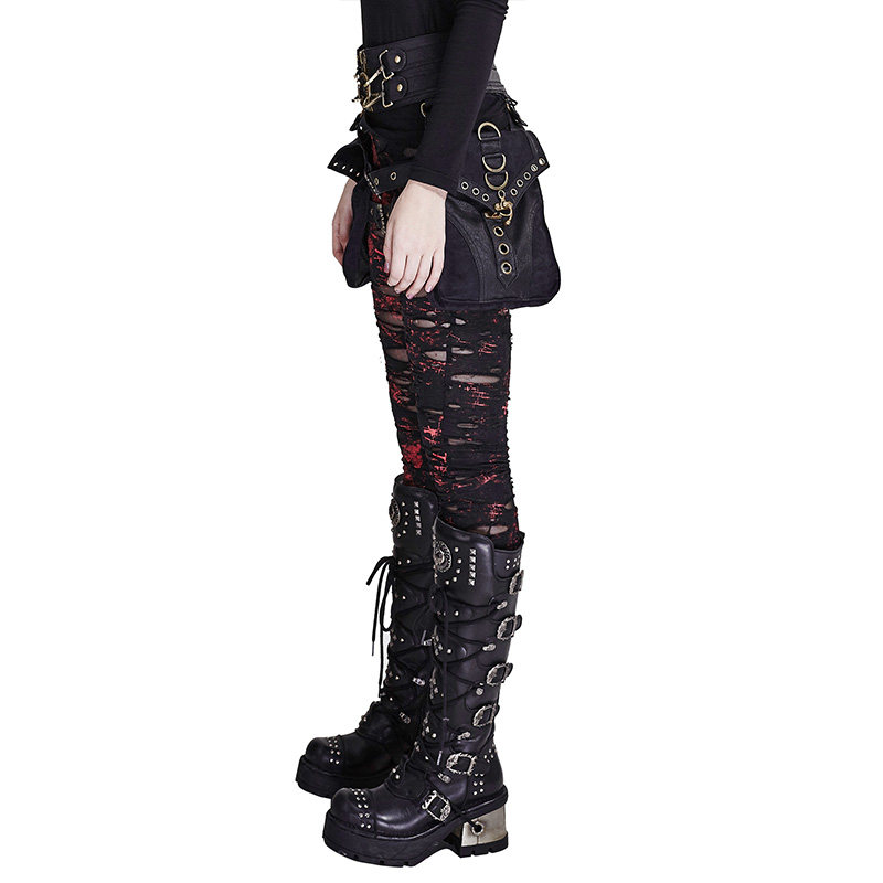 Леггинсы, съемная поясная сумка, комбинезон, штаны, в стиле панк, в обтяжку