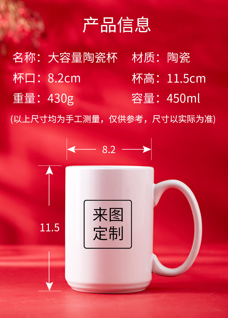 Kuyin Large -Capacity Mark Cup Custom Logo Printing Ceramic Cup индивидуальная QR -код рекламирует подарок C.