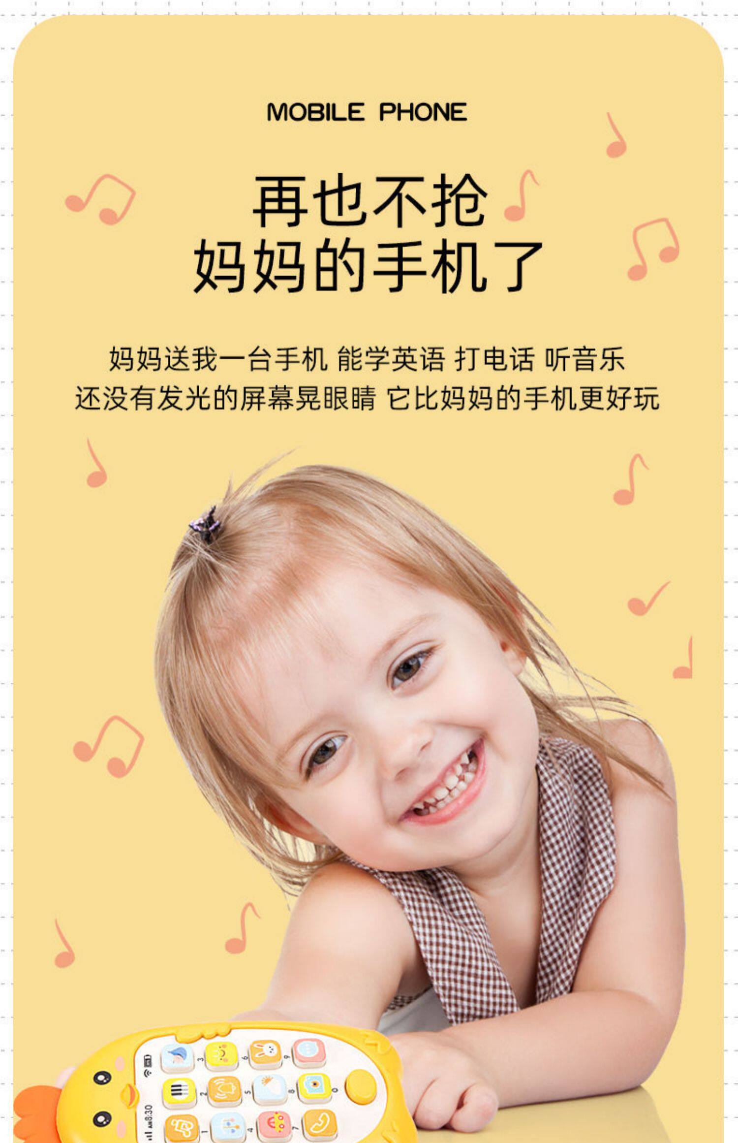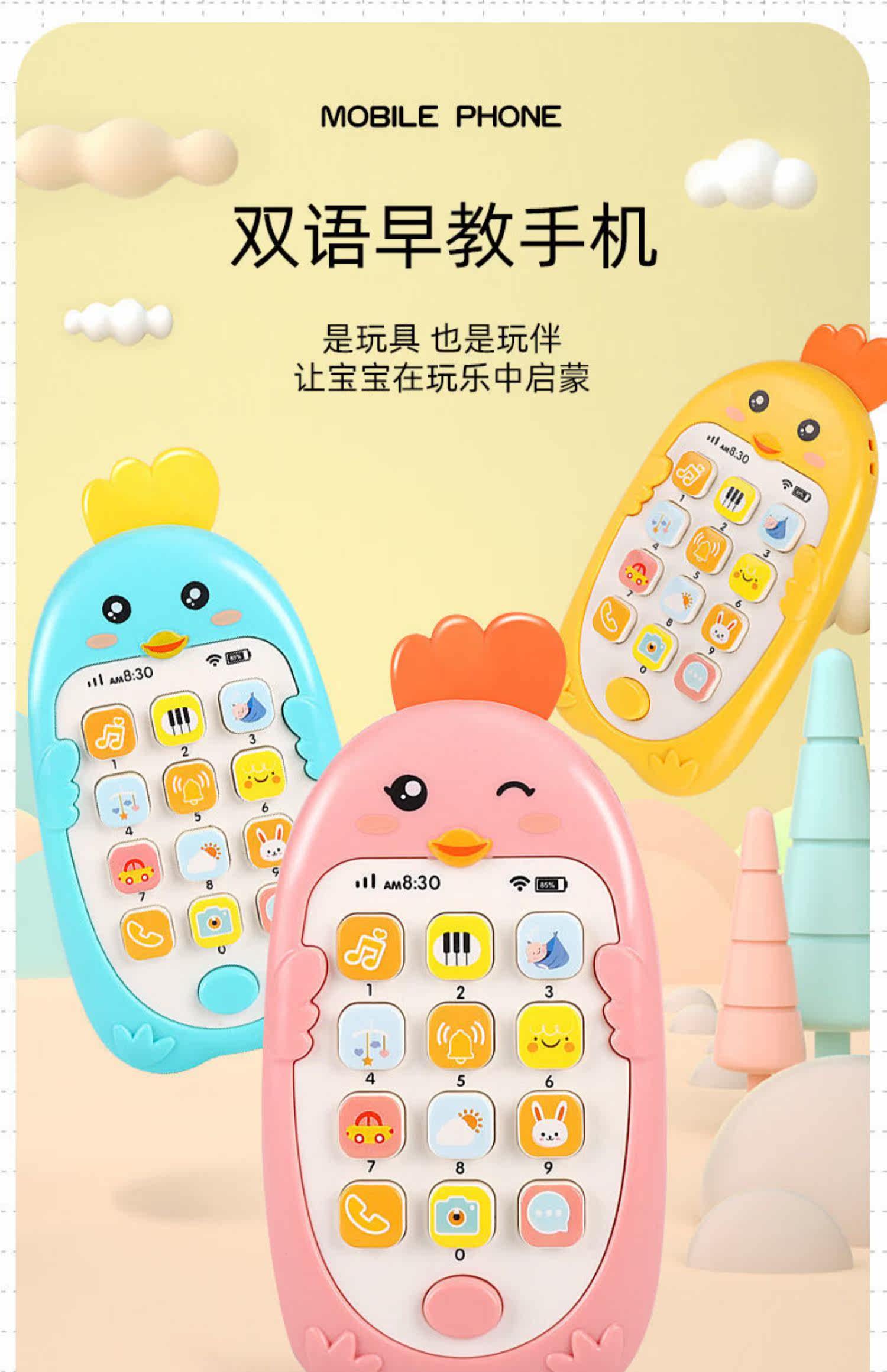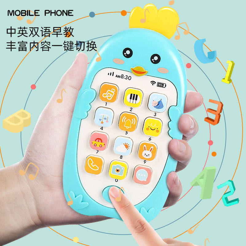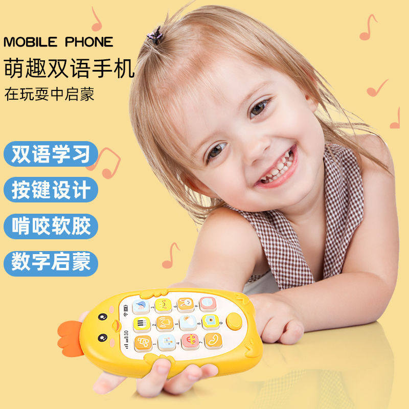 Детский прорезыватель, мультяшный реалистичный мобильный телефон, музыкальная игрушка с зарядкой, можно грызть, раннее развитие