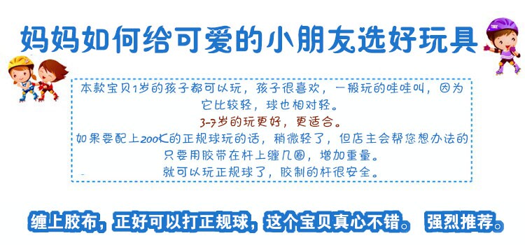 Этот клуб подходит для детей, чтобы играть во время катания. Два клуба и два шара, мяч делает плоский мяч большим черным, а желтый шарик меньше.