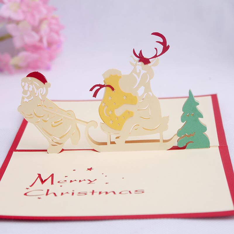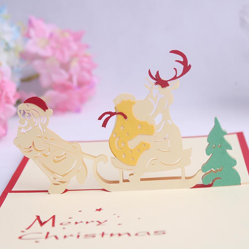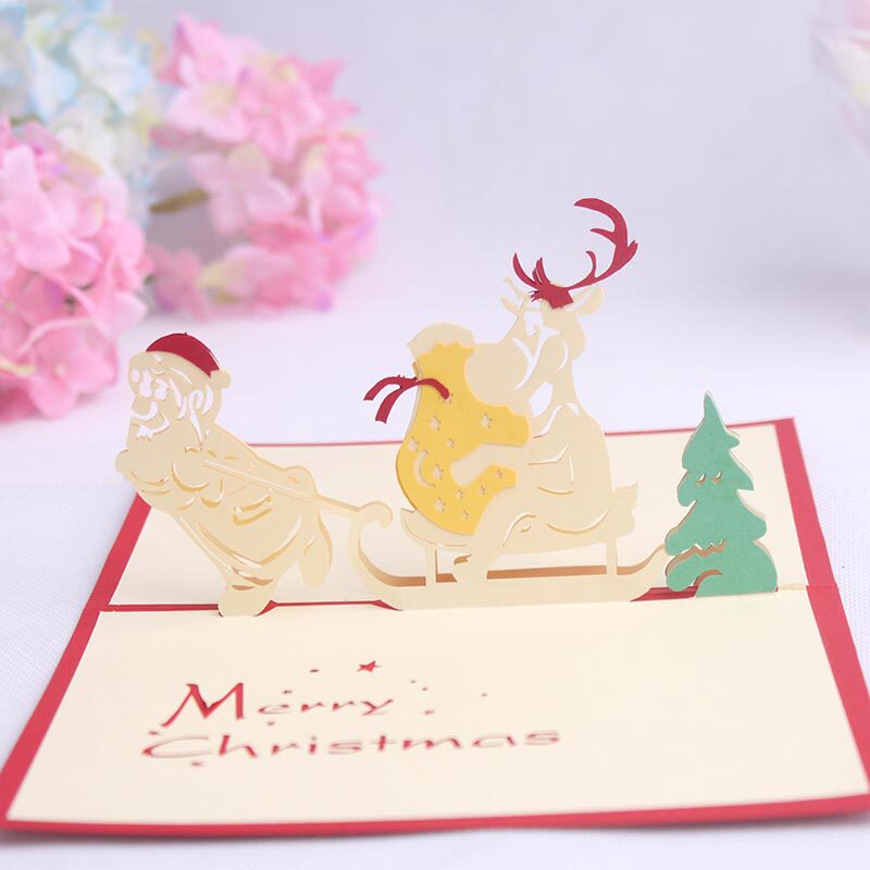 品妮 Бесплатная доставка Творческая и практическая новогодняя открытка на день рождения Санта -Клаус Холлоу 3D Трехмерная резьба