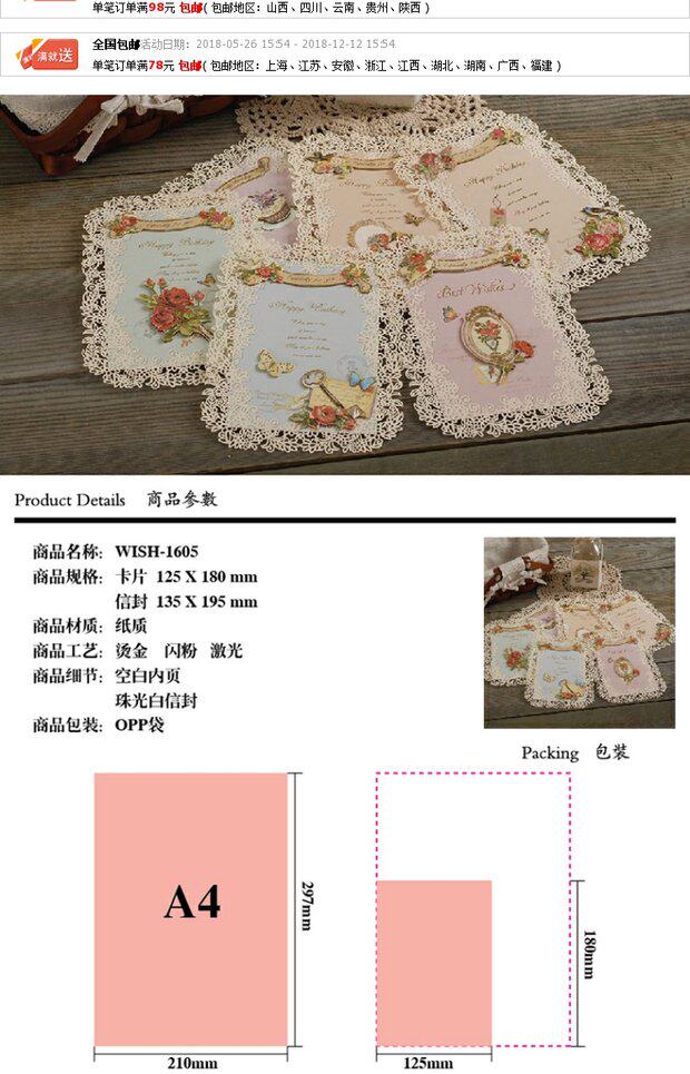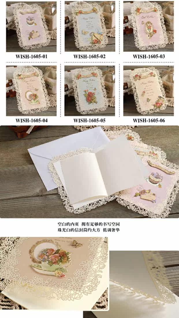 Кружевная открытка, универсальные карточки, Южная Корея, wish