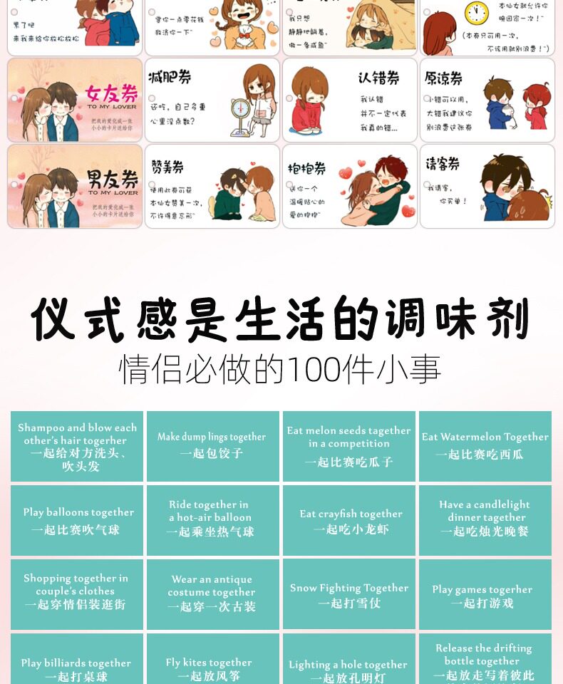 Пары любят друг друга сотня маленьких вещей, чтобы перфорировать любовные пары должны сделать 100 важных календарей тривиальных карт