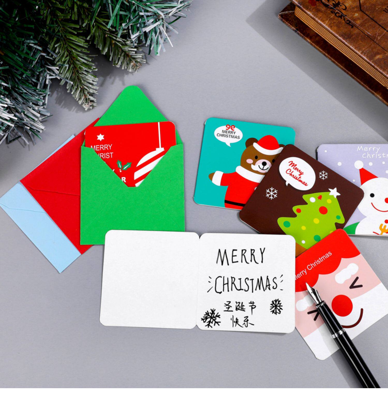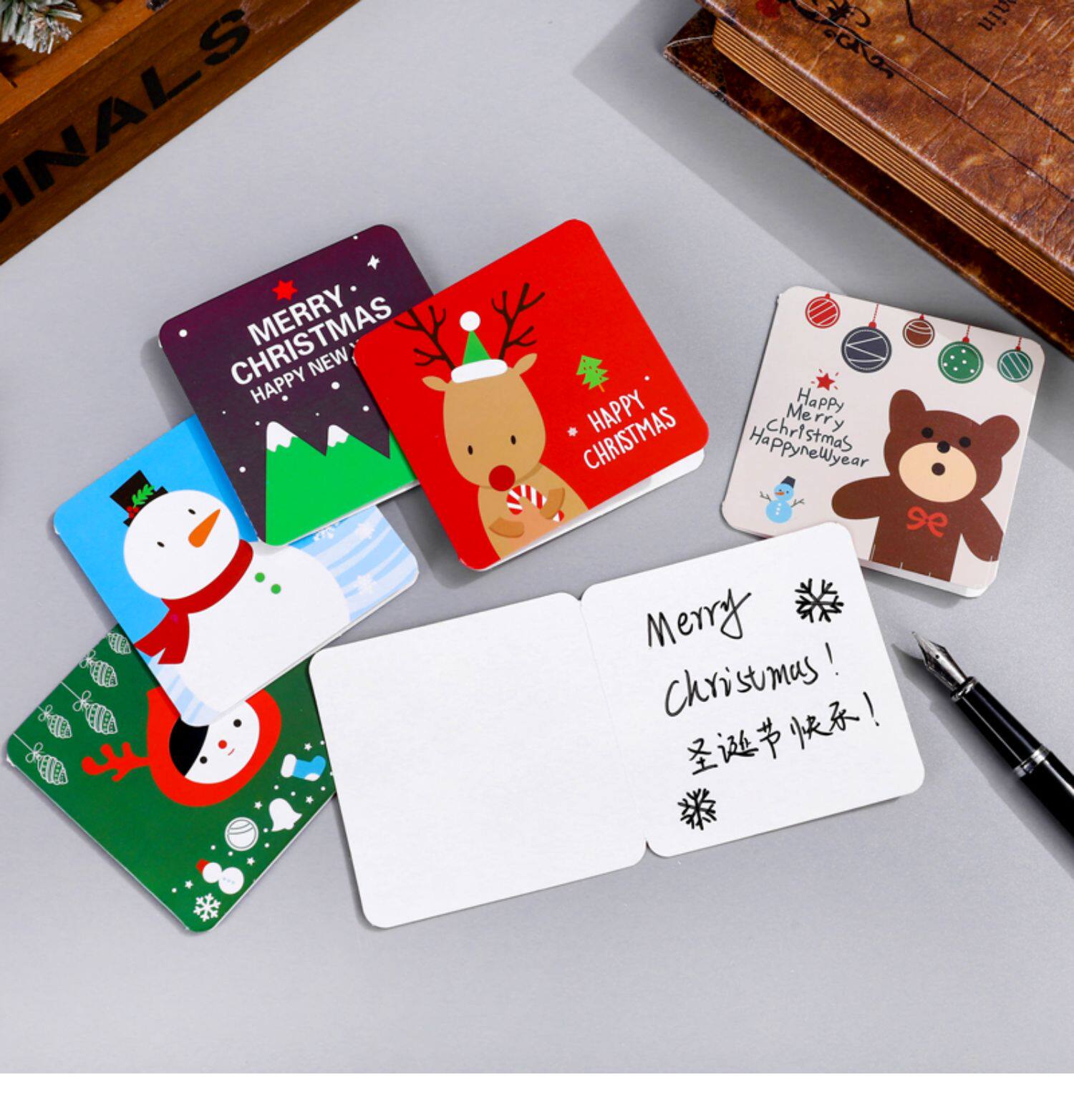 Трехмерная мультяшная открытка, маленькие рождественские карточки, английский, подарок на день рождения