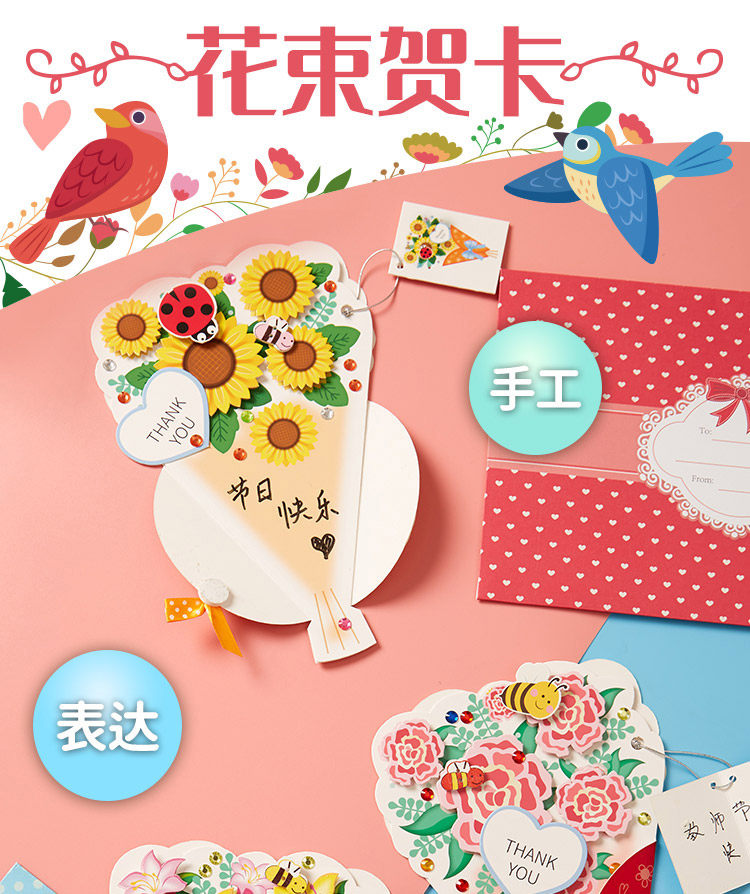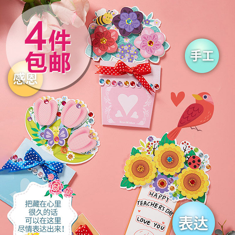 Открытка, DIY, в цветочек, букет