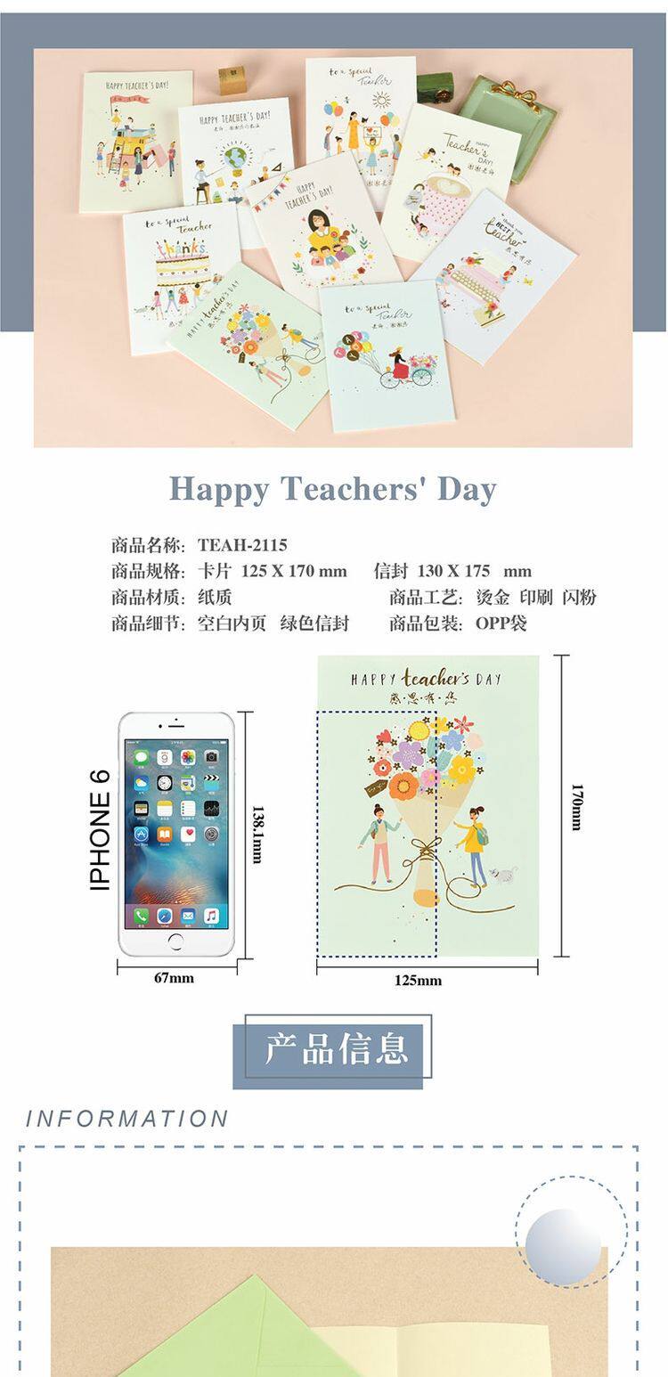 Приветствующая карта Дня учителя Ins High -End Выпускной сезон отмечает карту учителя желает творческого письма подарок 2115
