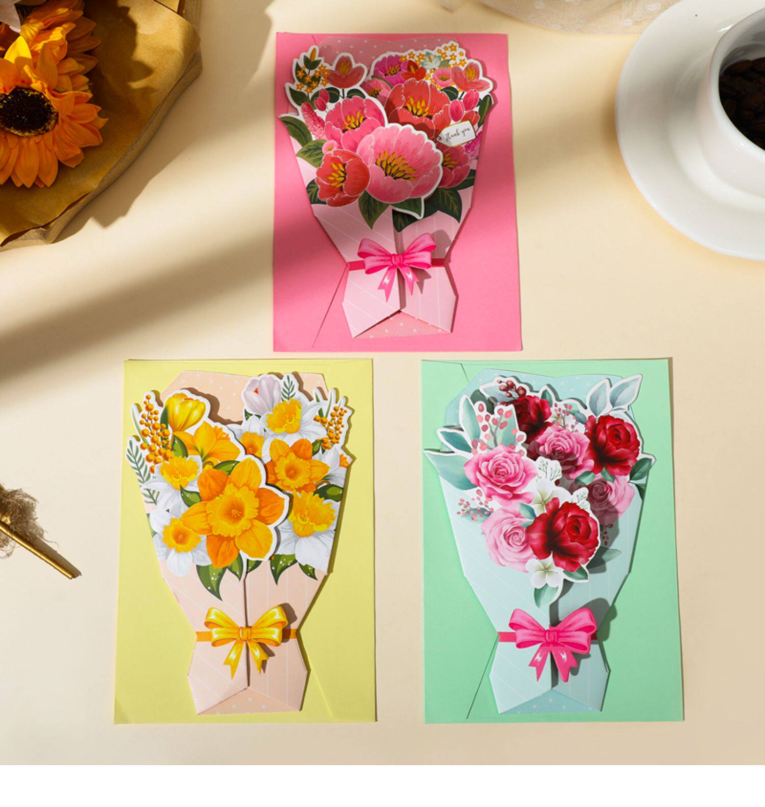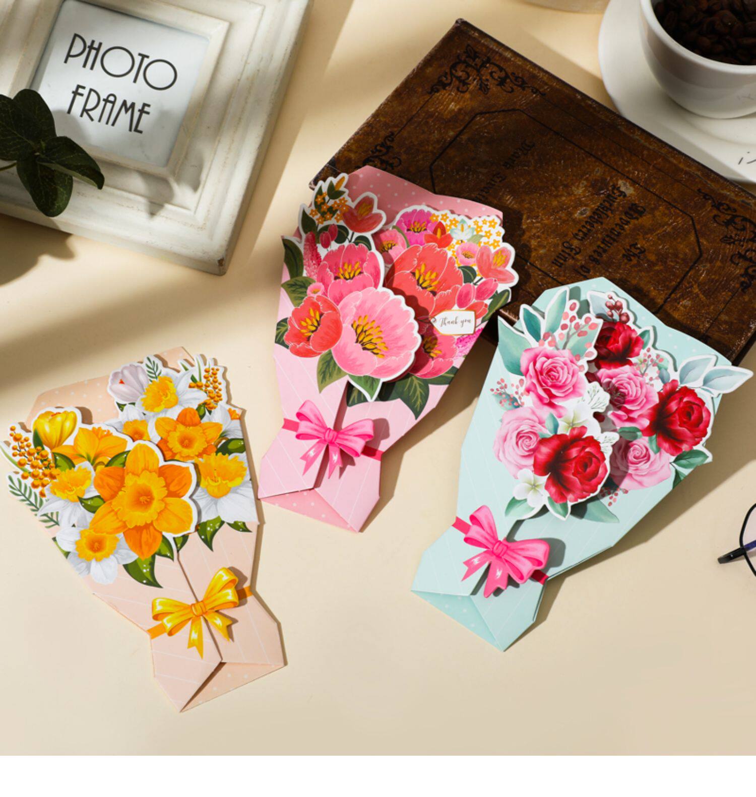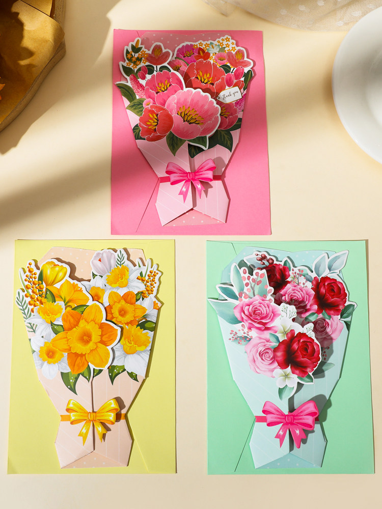 Трехмерная свежая открытка, карточки, букет, подарок на день рождения, изысканный стиль