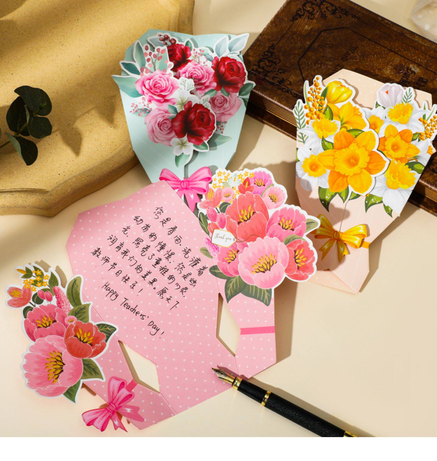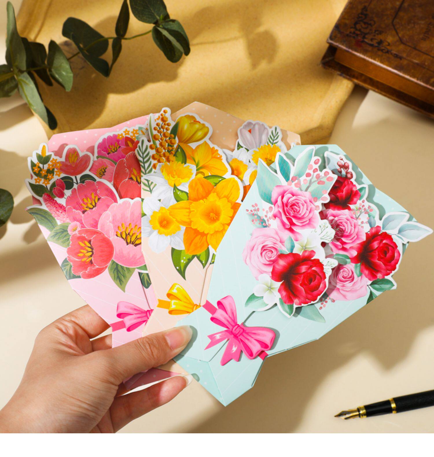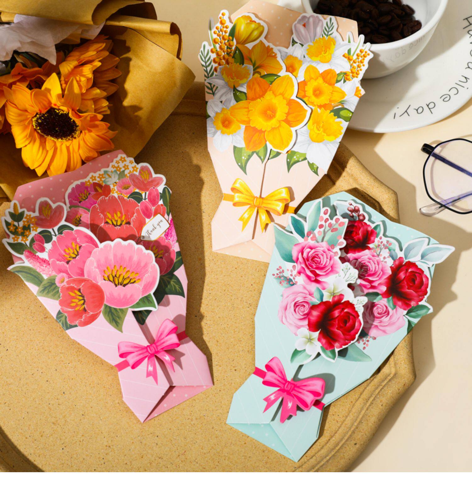 Трехмерная свежая открытка, карточки, букет, подарок на день рождения, изысканный стиль