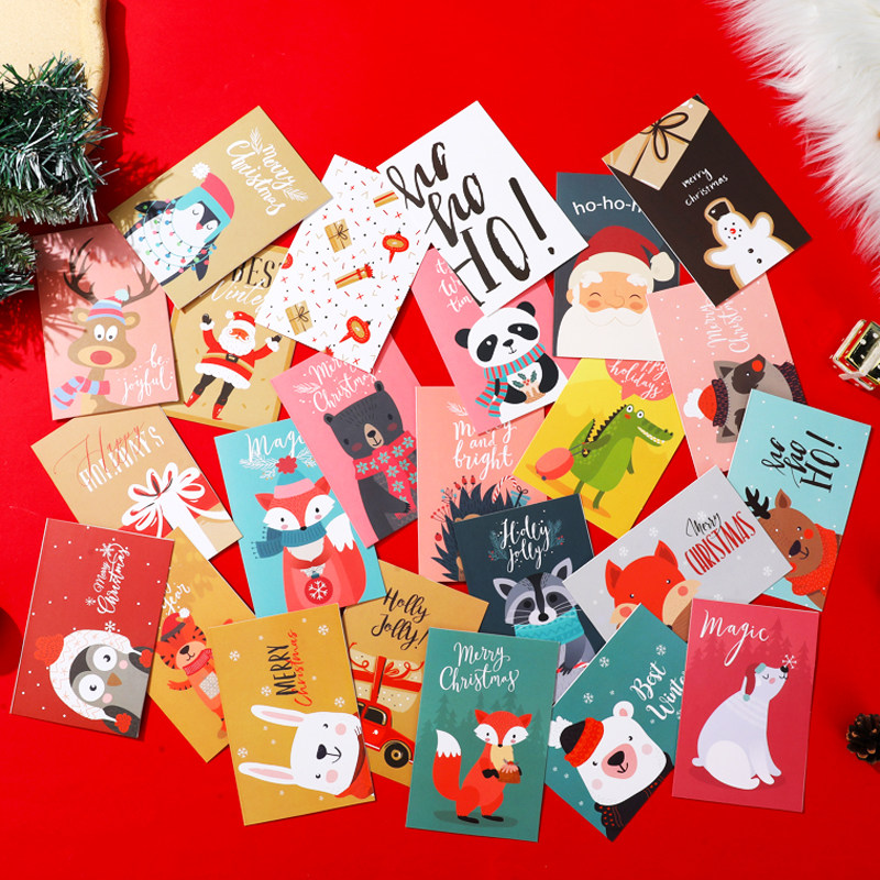 24 карты без повторяющихся рождественских поздравительных открыток детского мультфильма подарки.