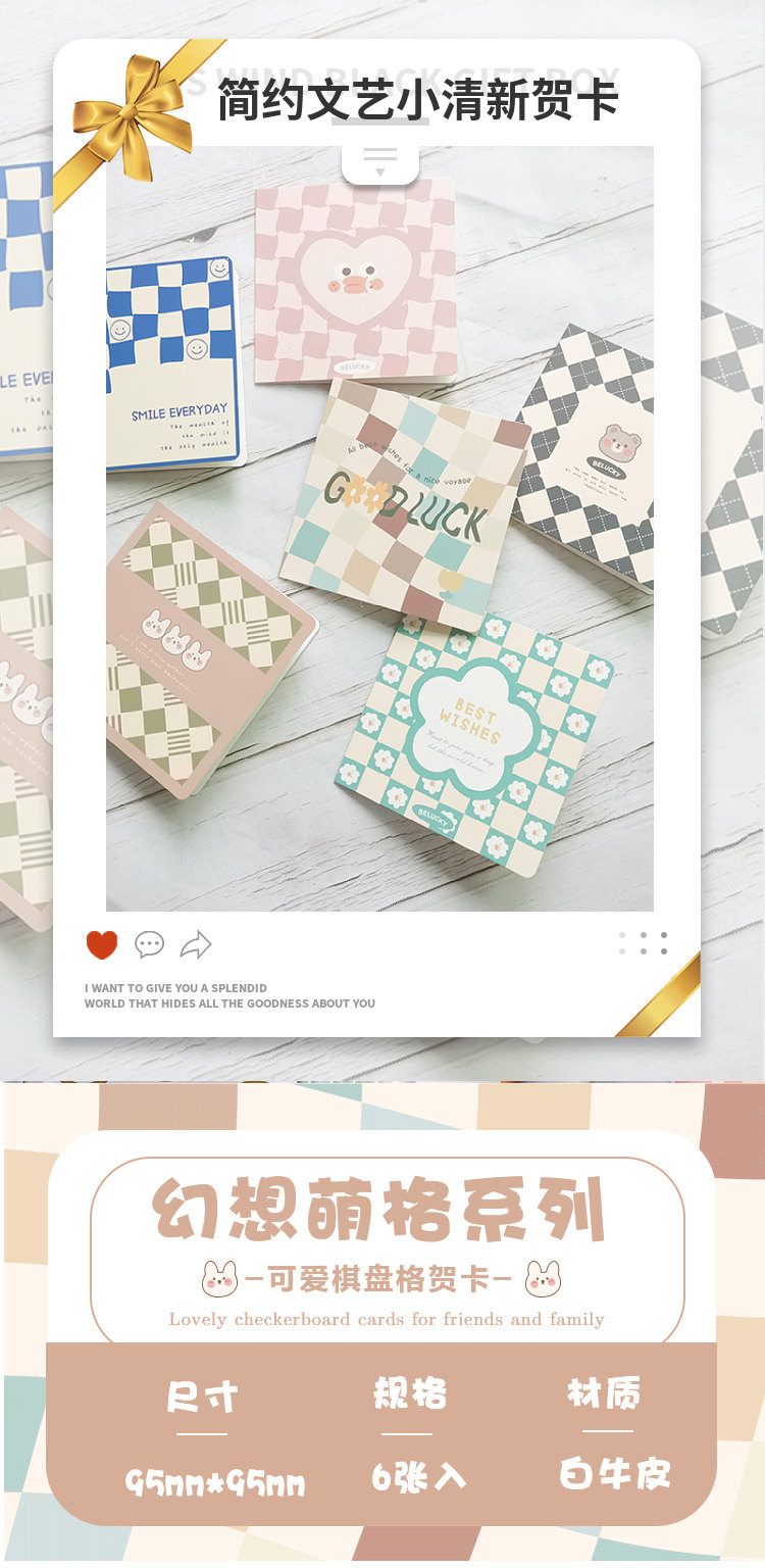 | Цвет: | Поздравительные открытки в клетку (6 шт./компл.) Характеристики: 9,5*9,5 см., Цзянь И собирает поздравительные открытки (6 шт./компл.) Характеристики: 11,5*8,5 см |