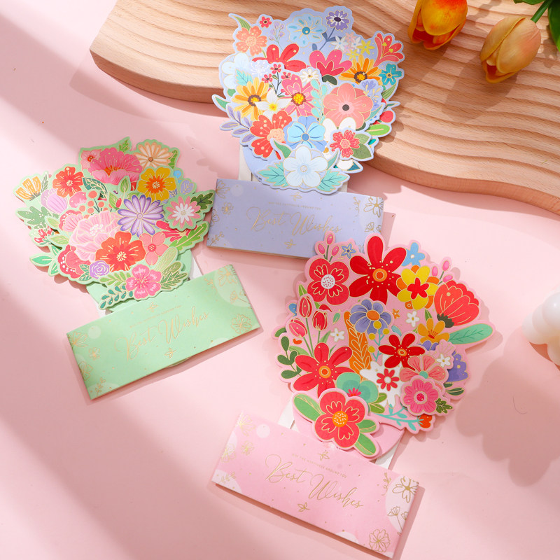 3D Stereo Bouquet Card+Color Overvelope+прозрачная сумка