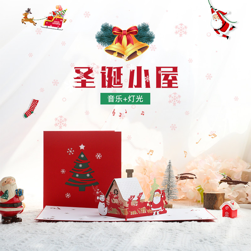 Рождественская трехмерная открытка, легкие музыкальные карточки, DIY, коллекция 2023, подарок на день рождения, изысканный стиль, 3D