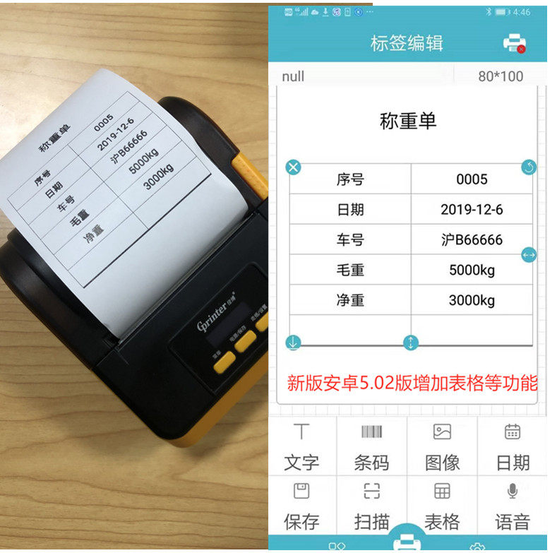 Портативный мобильный телефон, принтер, bluetooth, платина 260 пробы, 380, 80мм