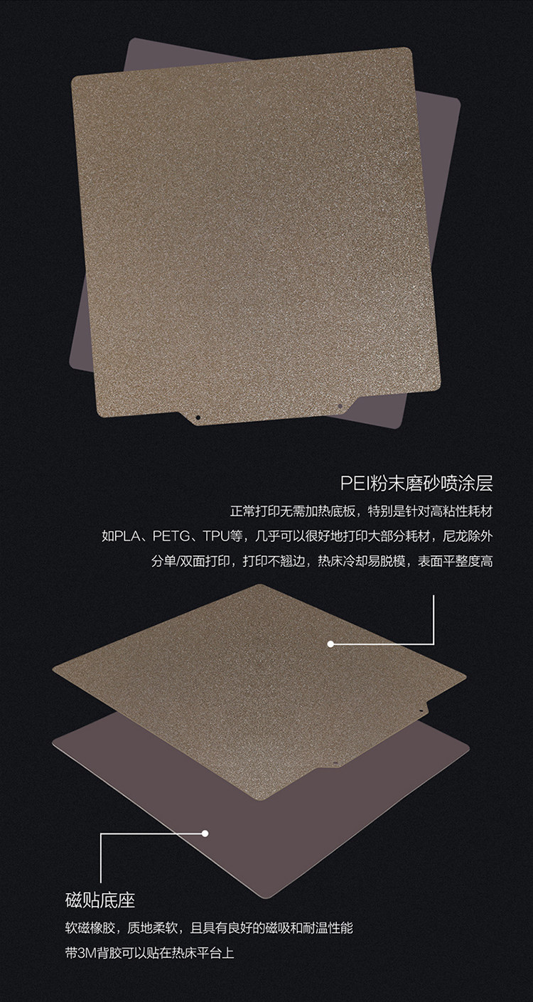 - 180*180 PEI -распыляемый стальной лист + магнитный лист всасывания