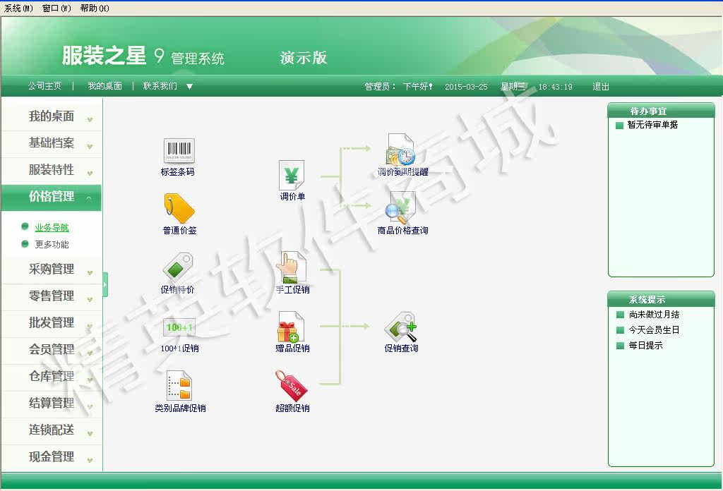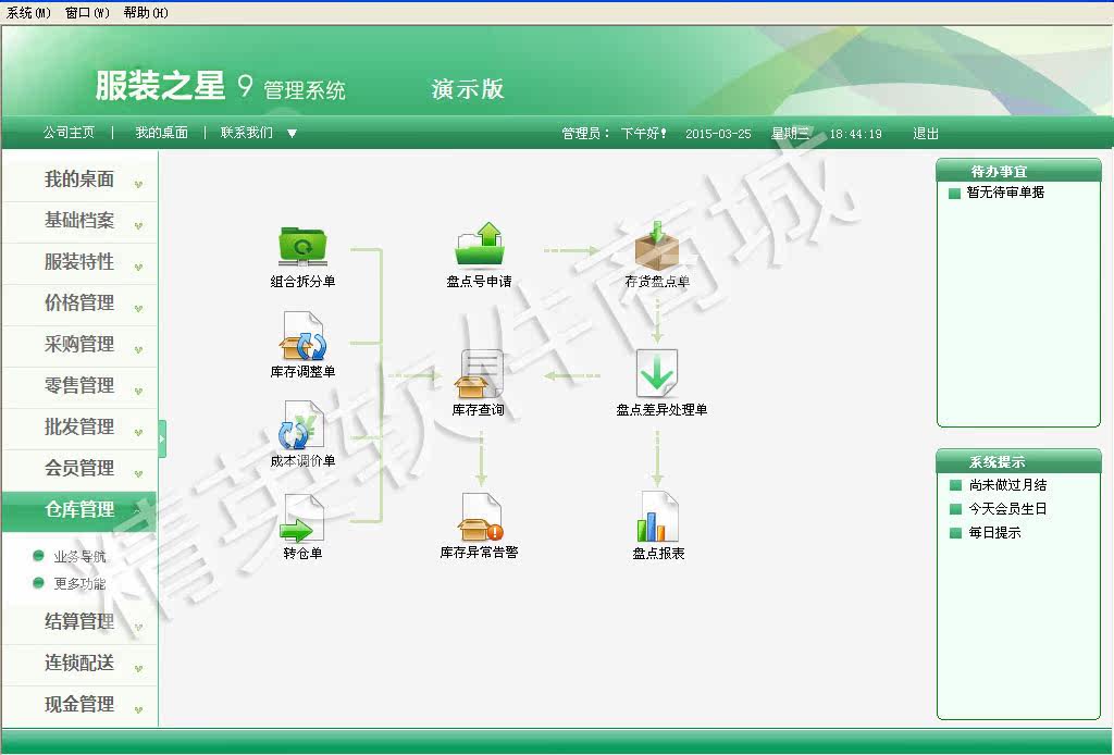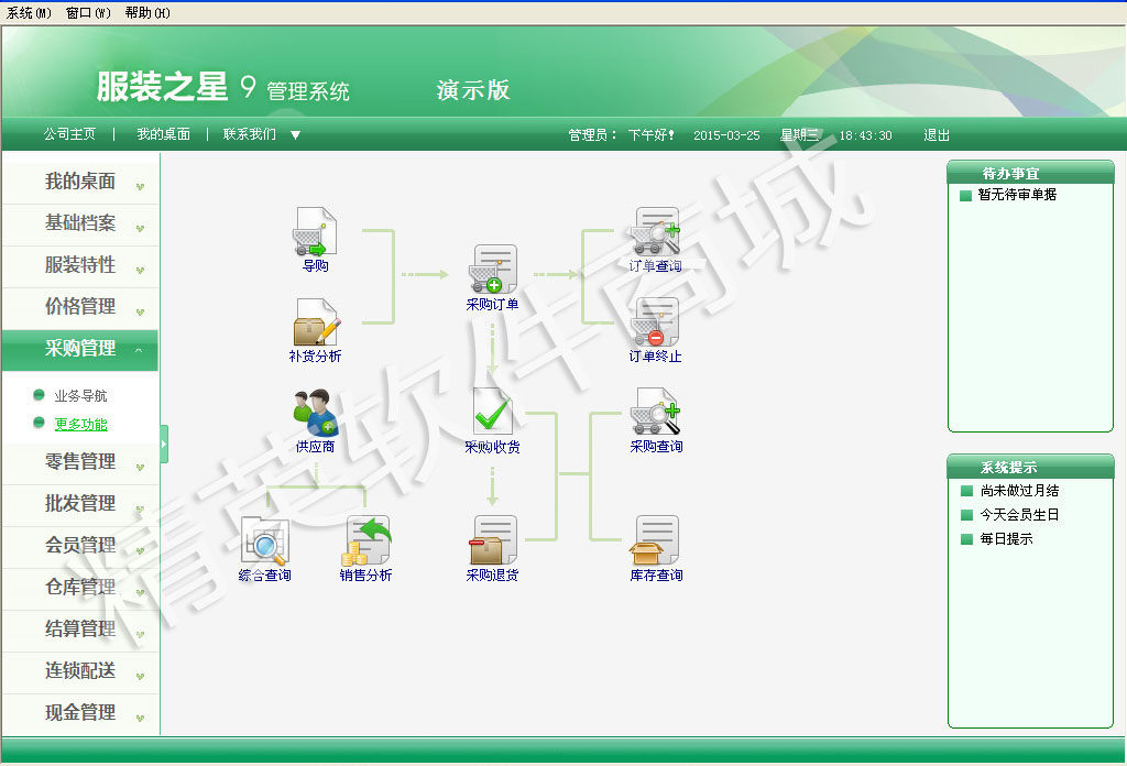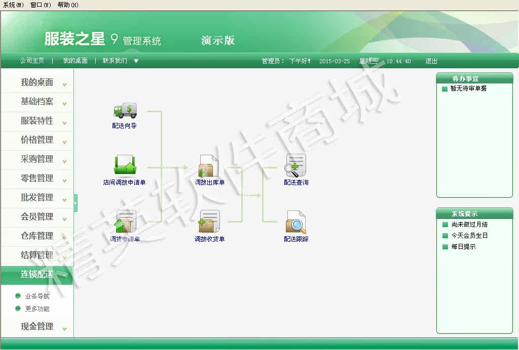 Система содержит все идеи управления бизнесом товаров, потока информации и капитала компании. Она дополняет систему магазинов, систему распределительного центра и систему поддержки принятия решений, чтобы совместно реализовать реальную и высокую эффективность и безопасную управление информацией.