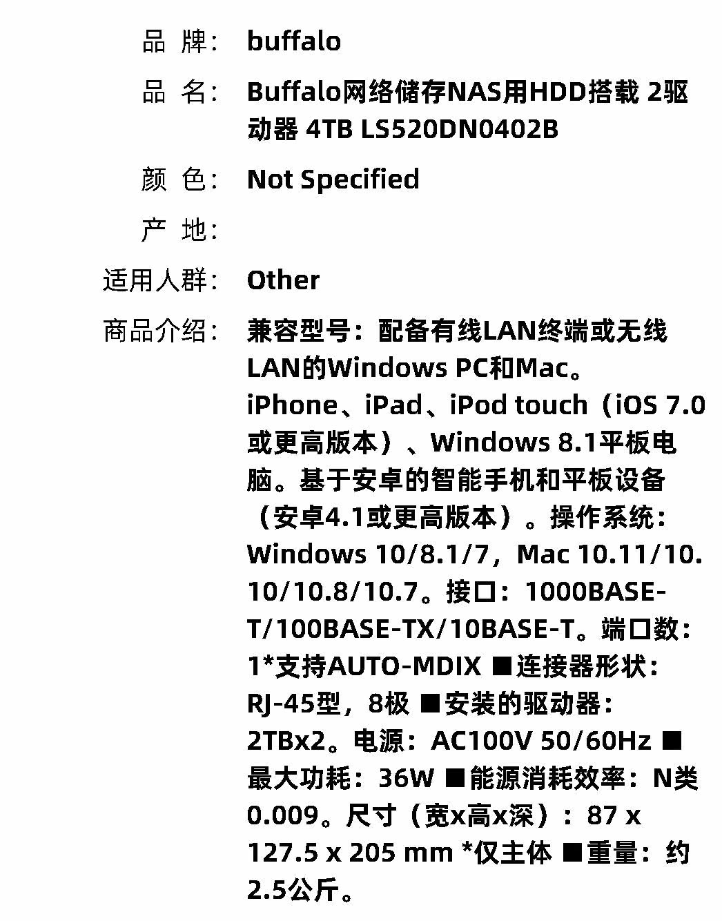 【Japan Direct Manal】 NAS Buffalo Network Storage с HDD 2 драйвером 4TB LS520DN0
