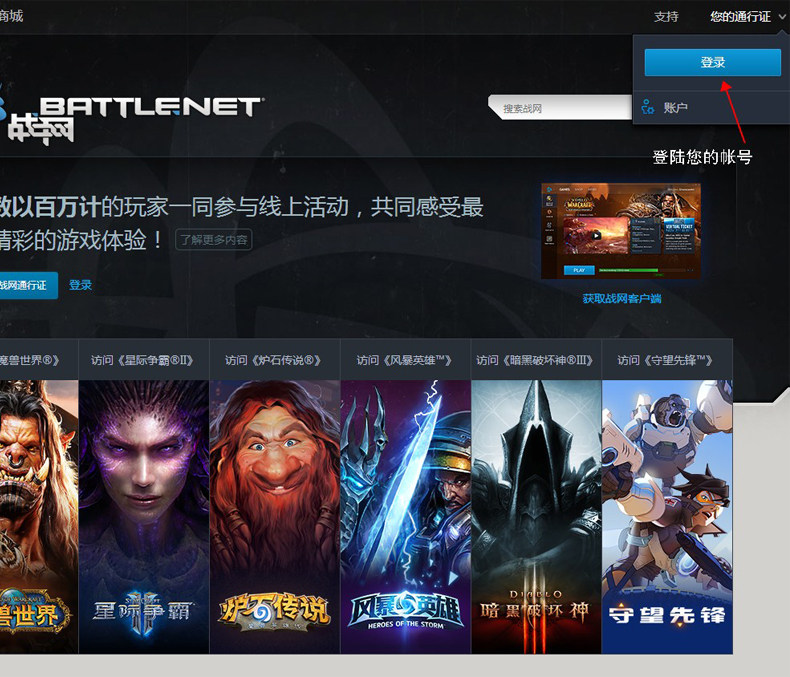 Первым шагом является проведение боевой сети:http://www.battlenet.com.cn введите свой проход и пароль в соответствии с приглашением