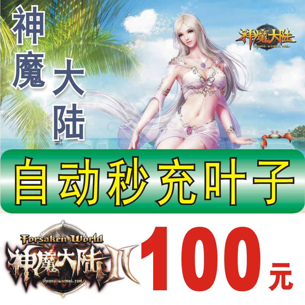 Идеальный мультфильм Бог Демон Континентальная карта 100 Юань 4000 листьев мирового дерева автоматически перезаряжайтесь в игру