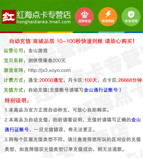 Продавец:红海点卡专营店