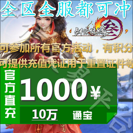 Jinshan Yitong 1000 Yuan Sword Net 3 Pass, Sword, 3 меч, три меча, три неограниченные мобильные игры 100 000 Tongbao Automatic Recharge