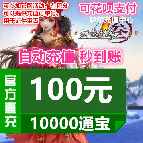 Jinshan Yitong 100 Yuan/Jianwang 3 Sword Net Three Sword Three -Hay Treasure 100 Yuan 10000 Меч 3 Тонгбао поколение заряжает секунды