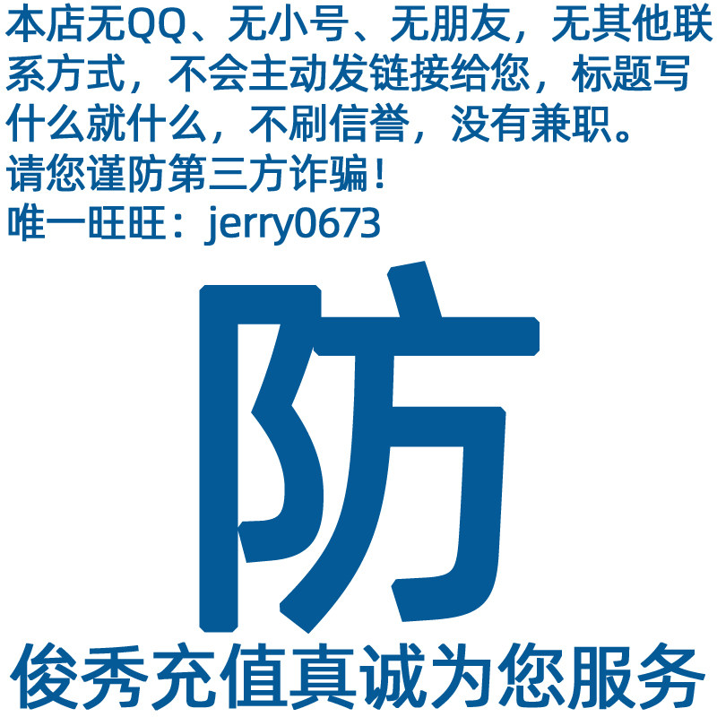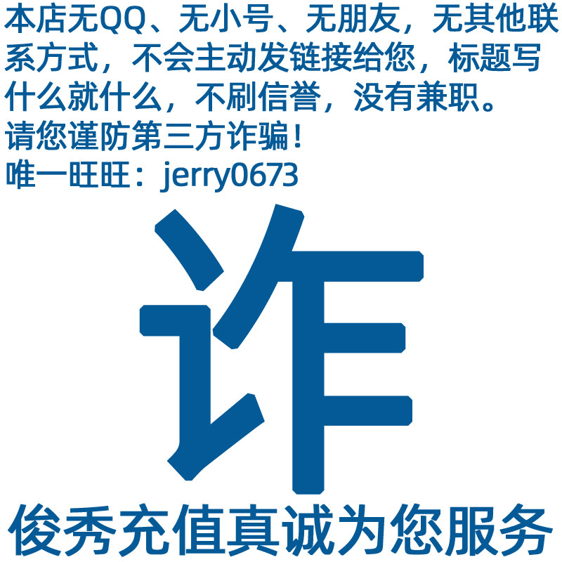 | 1. Пожалуйста, пожалуйста, покупатели перед покупкойПризнайте название продукта, Этот продукт может быть только заряжен в игру и описал описанную игру,Не могу перезарядить другихСущность 2. Будьте настороже с мошенниками"продавать по низкой цене","Заказ","неполная занятость"Подождите, по причинам, чтобы обмануть вас, чтобы купить мошенничество, остерегайтесь обмана. 3. В нашем магазине нет труб или филиалов. Продавец не примет инициативу отправлять ссылку на продукт кому -либо, а также не будет продаваться с какой -либо контактной информацией, отличной от Вангвана. Пожалуйста, обязательно обратите внимание на безопасность транзакций. 4. Если у вас есть какие -либо вопросы в транзакции, пожалуйста, проконсультируйтесь во времениЕдинственный процветающий продавец: Jerry0673Продавец должен справиться с этим должным образом. |