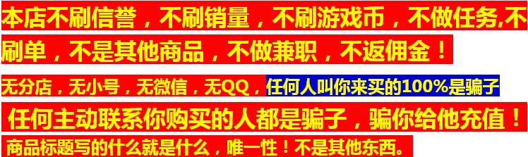 | 1. Пожалуйста, пожалуйста, покупатели перед покупкойПризнайте название продукта, Этот продукт может быть только заряжен в игру и описал описанную игру,Не могу перезарядить другихСущность 2. Будьте настороже с мошенниками"продавать по низкой цене","Заказ","неполная занятость"Подождите, по причинам, чтобы обмануть вас, чтобы купить мошенничество, остерегайтесь обмана. 3. В нашем магазине нет труб или филиалов. Продавец не примет инициативу отправлять ссылку на продукт кому -либо, а также не будет продаваться с какой -либо контактной информацией, отличной от Вангвана. Пожалуйста, обязательно обратите внимание на безопасность транзакций. |