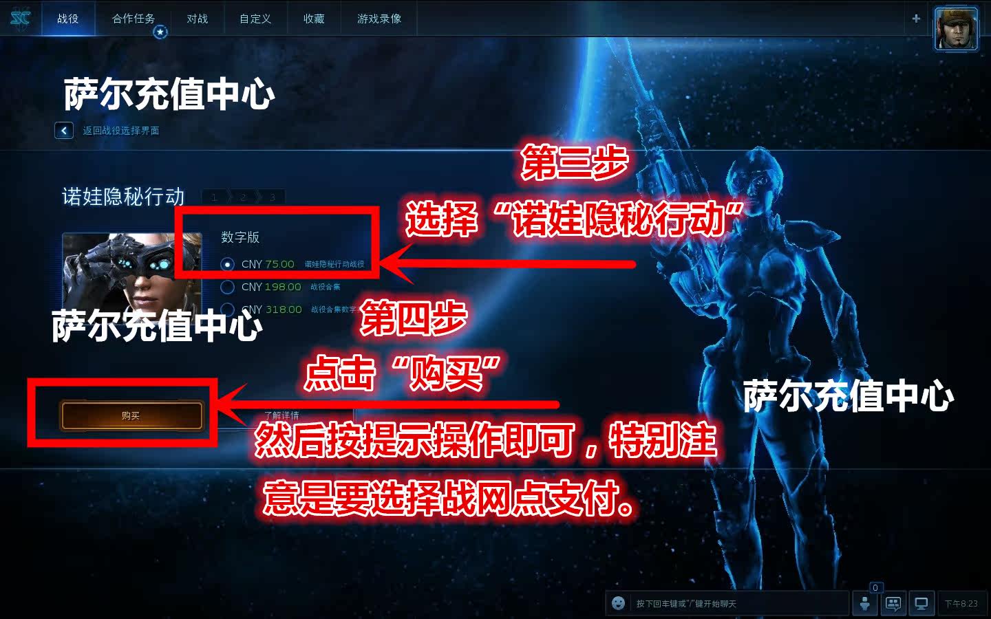 После завершения оплаты по шагам пакет миссий Nova Covert Ops будет разблокирован!