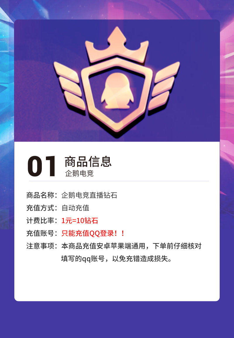 Penguin E -Sports Live 500 Diamond Recharge Penguin E -Sports 50 Юань автоматическая зарядка
