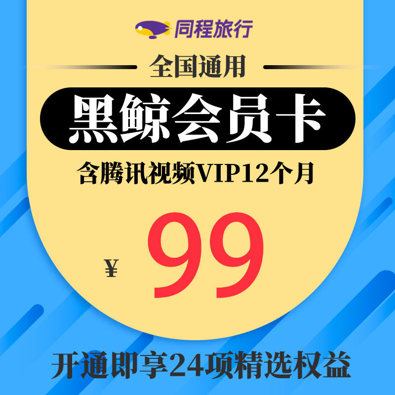[Только 94 обязаны получить купон] Tongcheng Yilong Black Whale участник VIP -годовой карту включает в себя членство в VIP -VIP в течение 12 месяцев