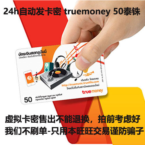 Круглосуточная автоматическая доставка в Юго-Восточную Азию, Таиланд. Карта пополнения счета True Money на 50 бат, код погашения TrueMoney.