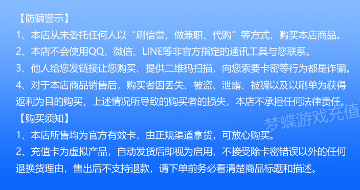 Продавец:梦蝶游戏充值中心