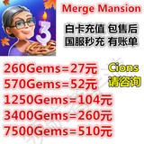 Merge Mansion Merge Manor Роскошный международный сервер Пополнение драгоценных камней Пополнение алмазов Криптон Золотые монеты Сохраненная стоимость