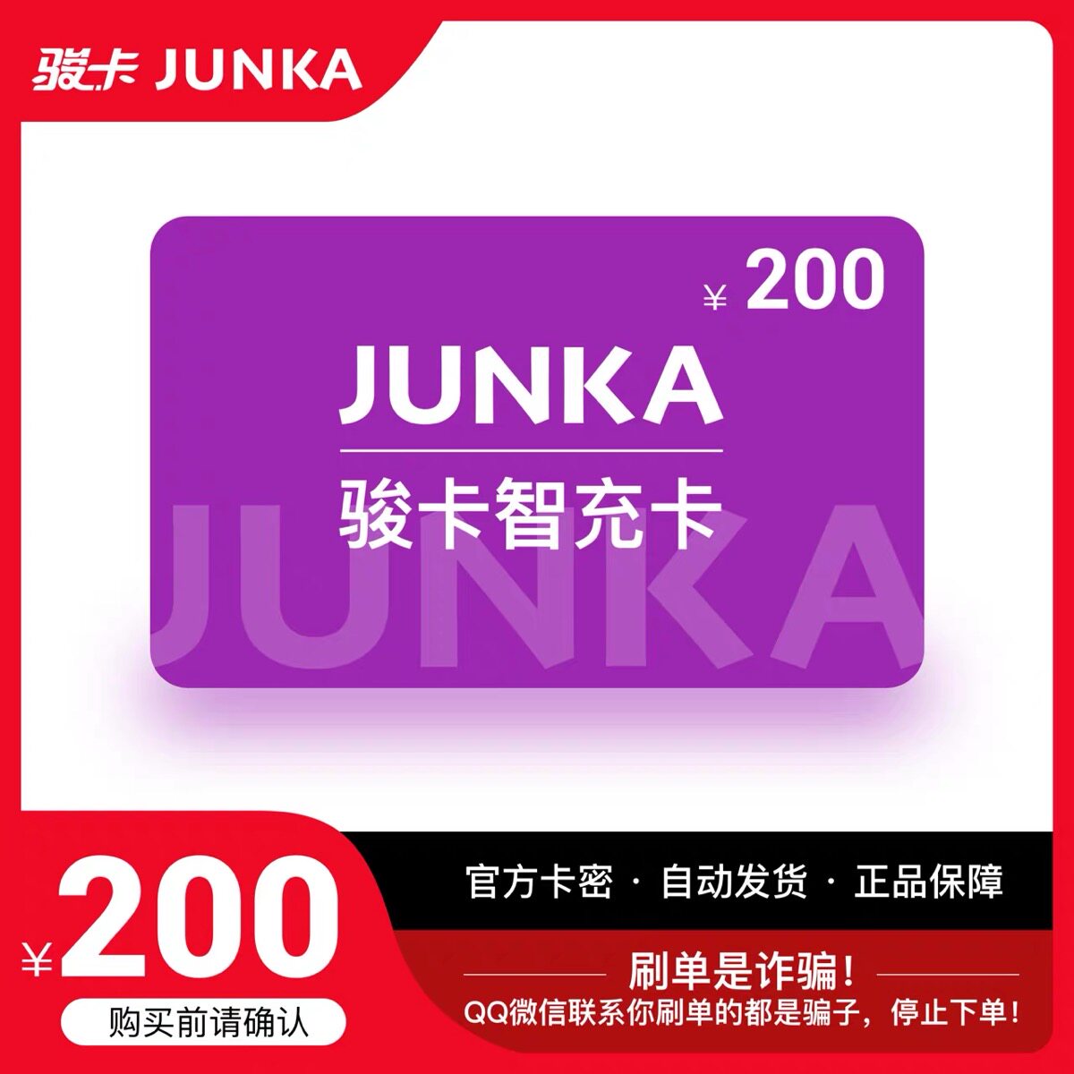 Jun Ka Zhi Chong Card 200 Yuan Card Mi-Mi Jun.com Smart Charging Card Автоматическая карта