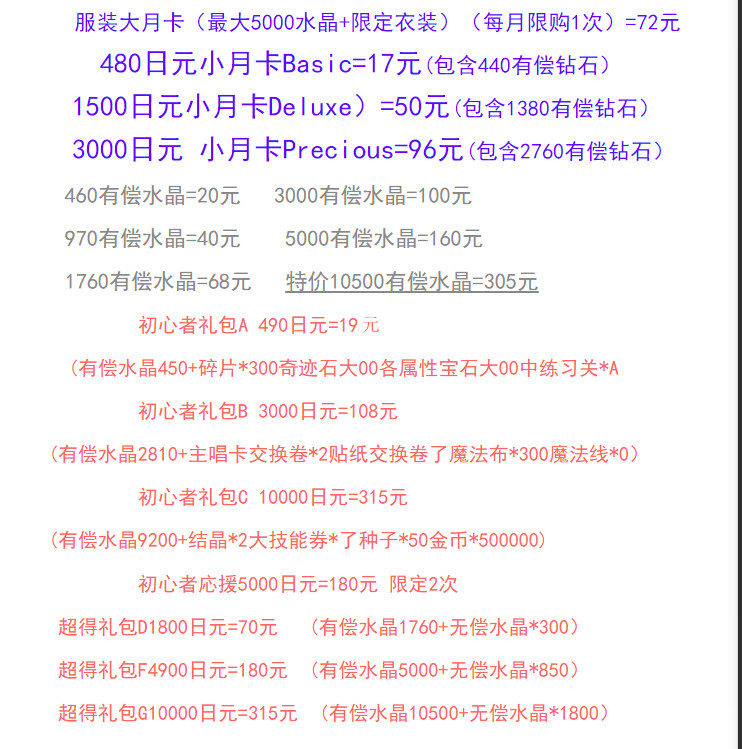 | Перезарядка: | Одежда, Карта большой луны драгоценна, Карта средней луны Deluxe, Xiaoyue card basic, Пропуск одежды+480 класс xiaoyue card, Пропуск одежды+1500 моно месяц карта, Пропуск одежды+3000 Gear Da Moon Card, Подарочный пакет может проконсультироваться с обслуживанием клиентов, Супер д, Дополнительная ф, Получите G., Pioneer Gift Package A, Pioneer Gift Package B, Pioneer Gift Package c, 150 Diamond, 460 Diamond, 970 Diamond, 1760 Diamond, 3000 бриллиантов, 5000 бриллиантов, 10500 Diamond |