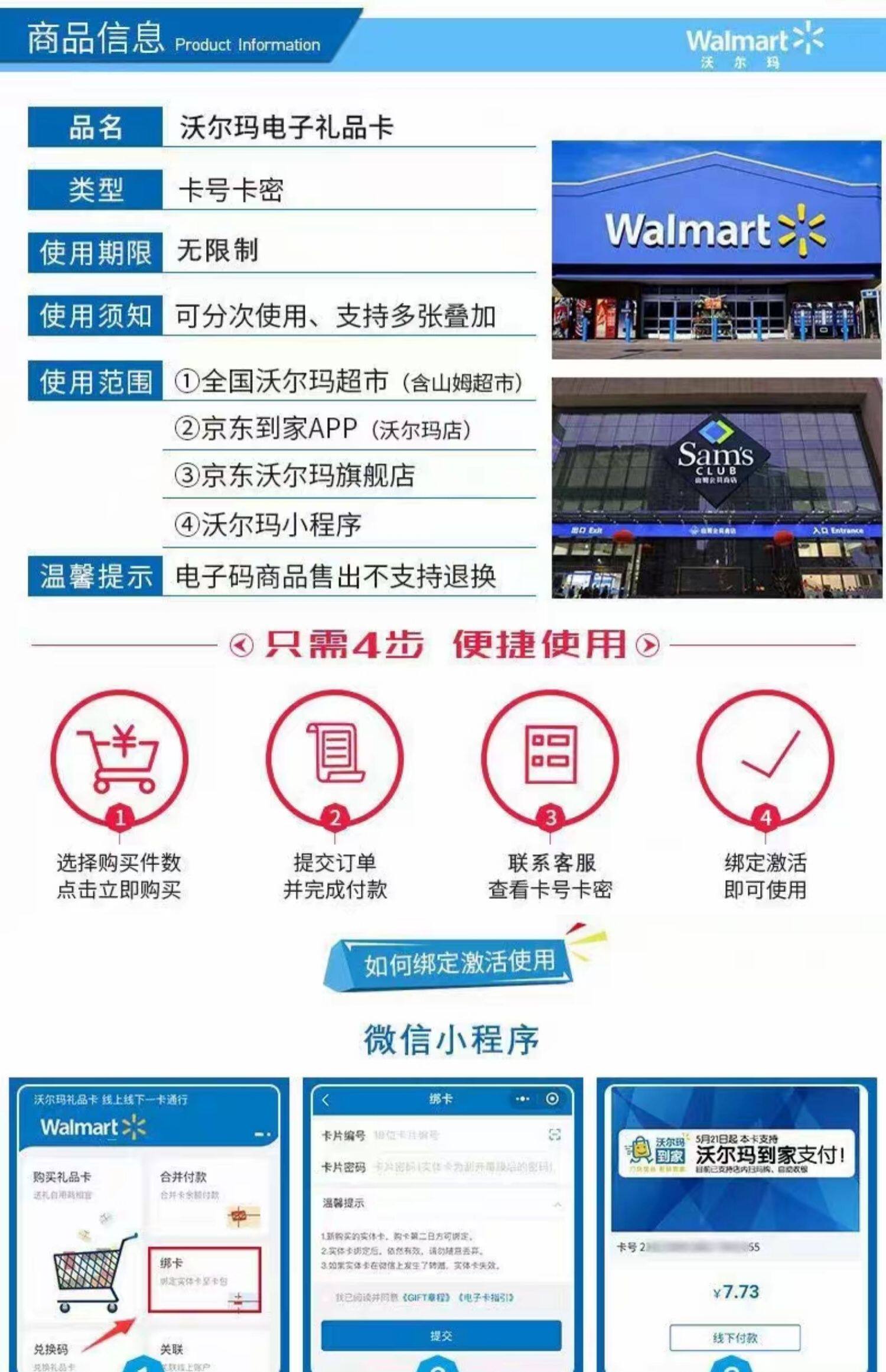 Wal -Mart Dift Card Подарочная карта 100 Yuan (электронная карта) выпуски, которые нельзя возместить или перевести.